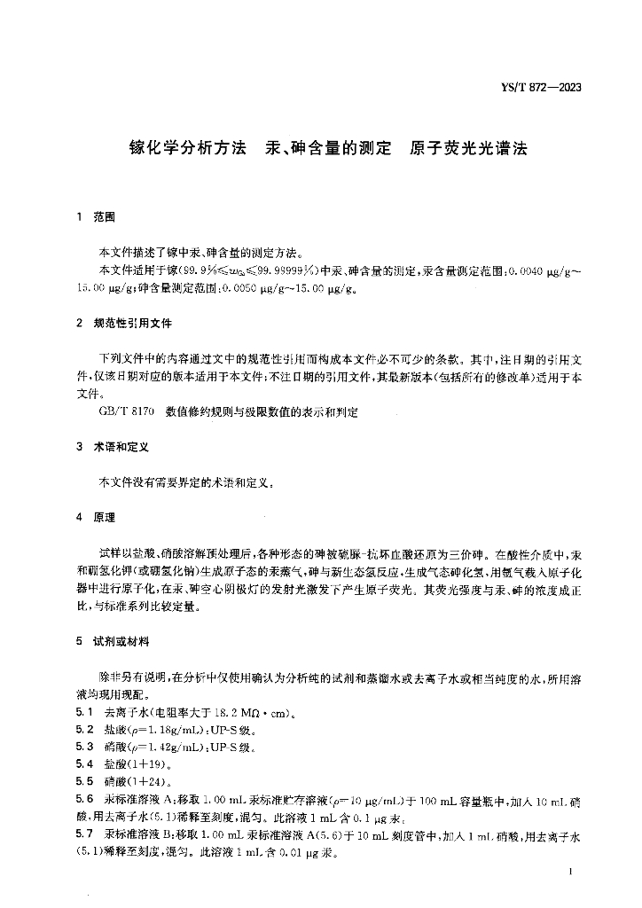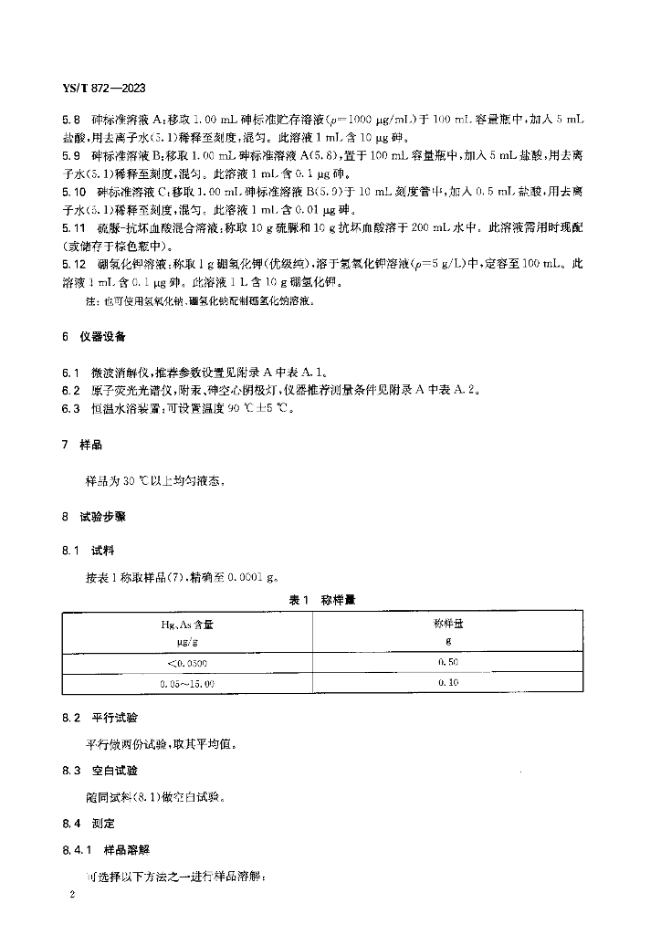 YS/T 872-2023 镓化学分析方法 汞、砷含量的测定 原子荧光光谱法