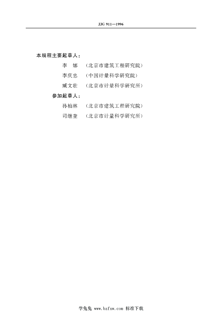 李娜(北京市建筑工程研究院)、李庆忠(中国计量科学研究院)、臧文壮(北京市计量科学研究所)、孙柏林(北京市建筑工程研究院)、司继奎(北京市计量科学研究所)