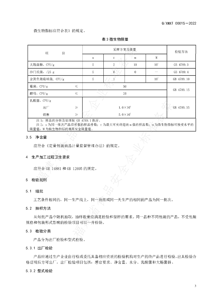 Q/XMXT 0001S-2022 益生菌固体饮料