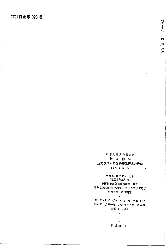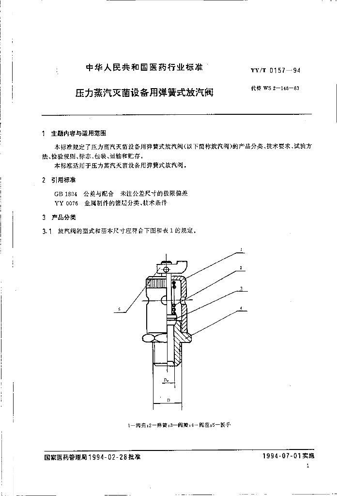 YY/T 0157-1994 压力蒸汽灭菌设备用弹簧式放汽阀