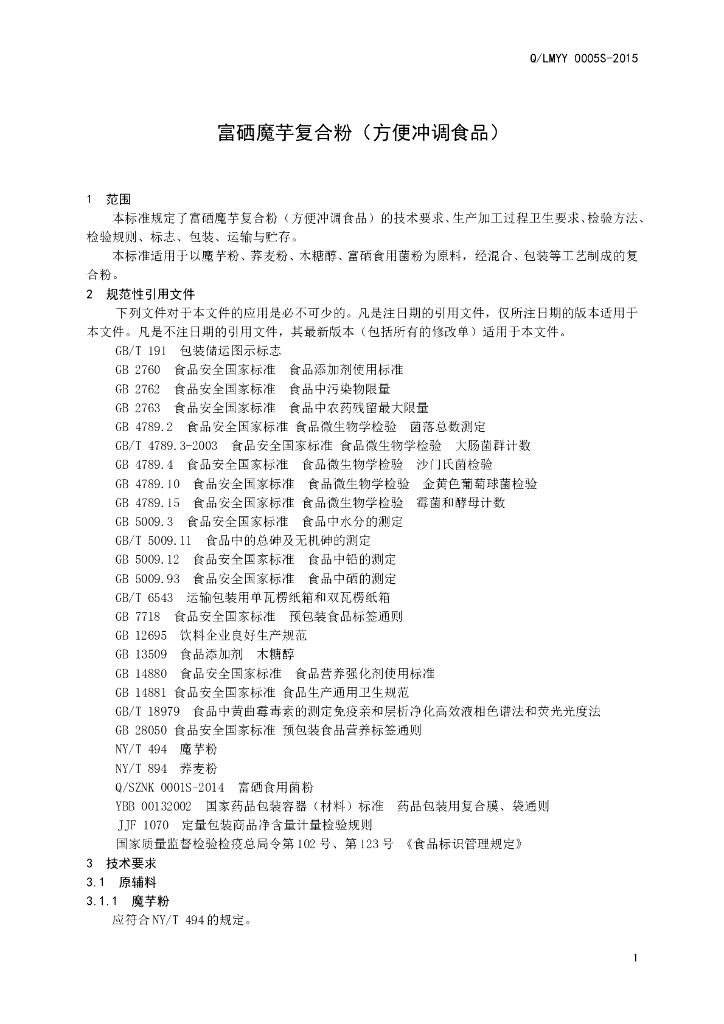 Q/LMYY 0005S-2015 山东利蒙药业有限公司 富硒魔芋复合粉(方便冲调食品)