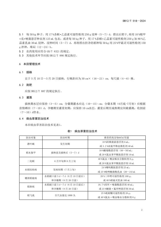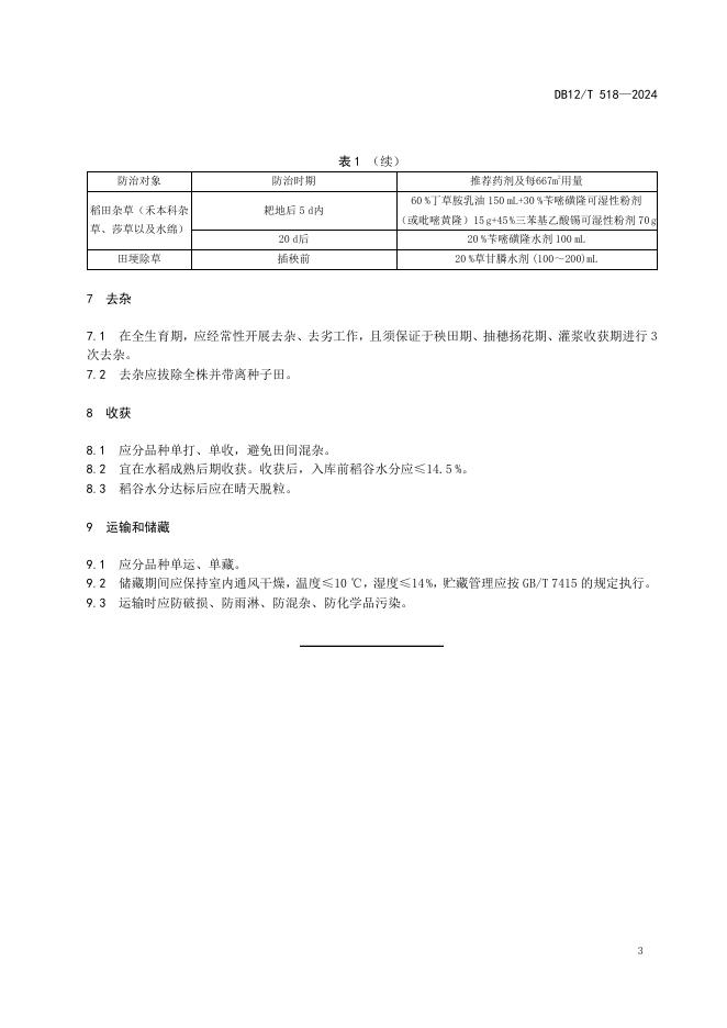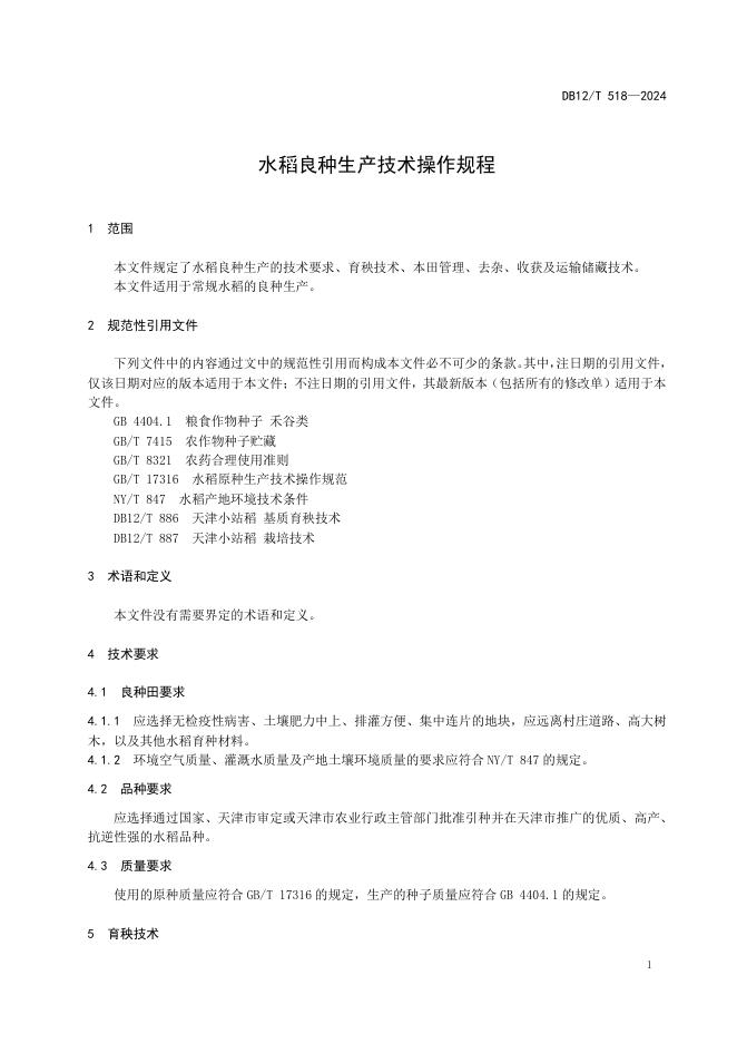 DB12/T 518-2024 水稻良种生产技术操作规程