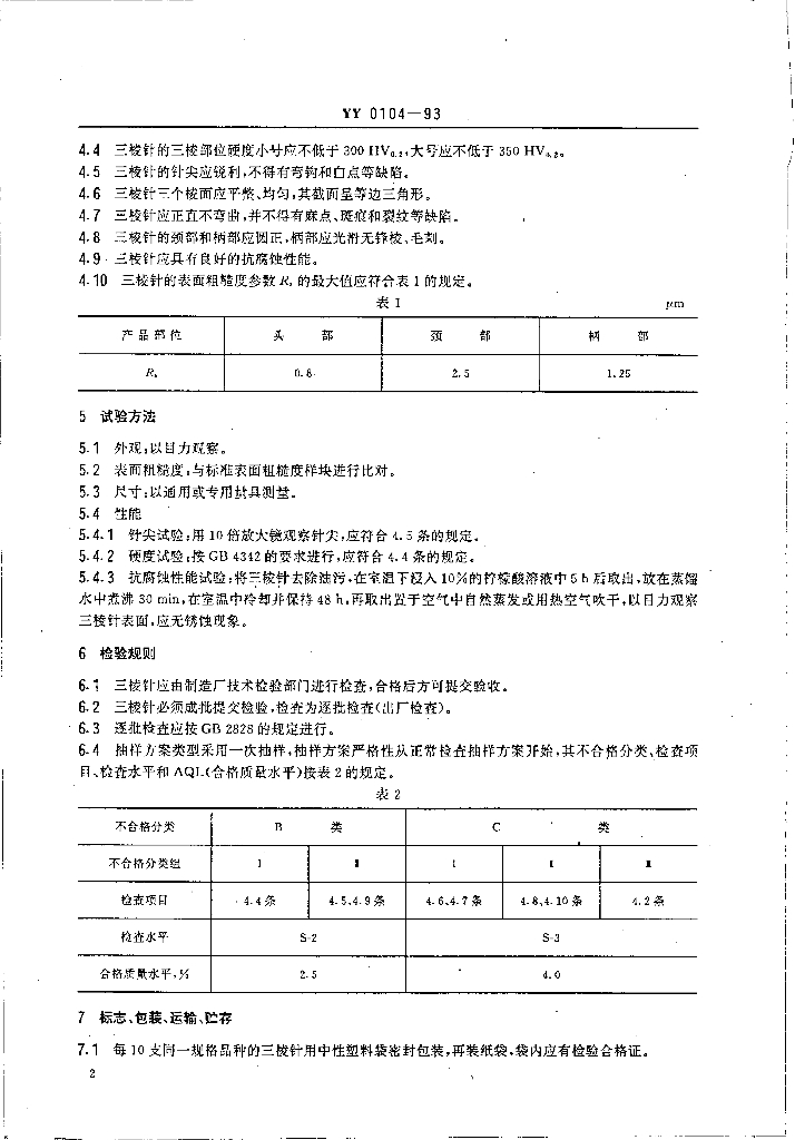 YY 0104-1993 三棱针