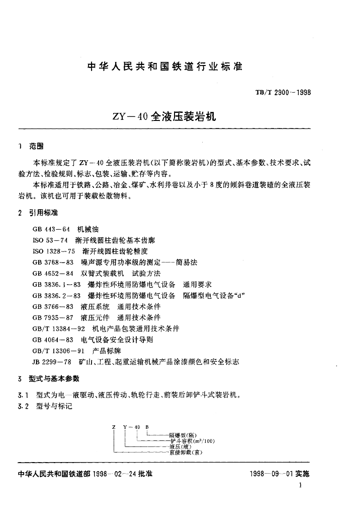 TB/T 2900-1998 ZY-40全液压装岩机