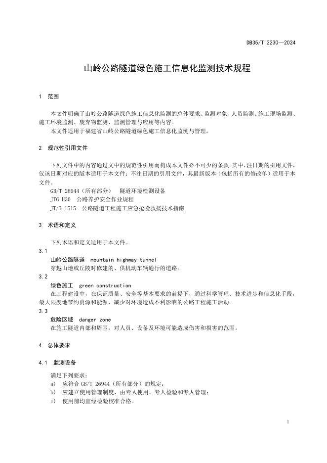 DB35/T 2230-2024 山岭公路隧道绿色施工信息化监测技术规程