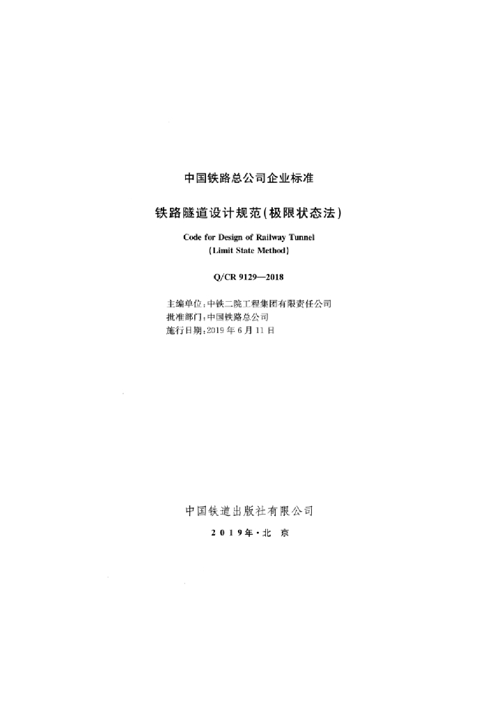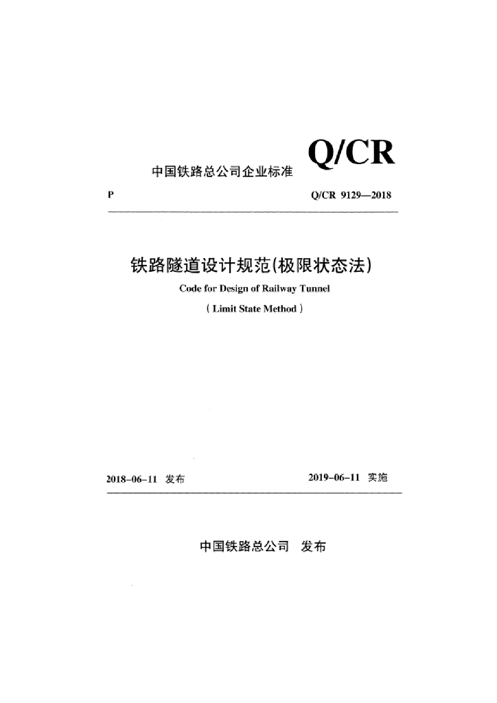 Q/CR 9129-2018 铁路隧道设计规范(极限状态法)(附条文说明)