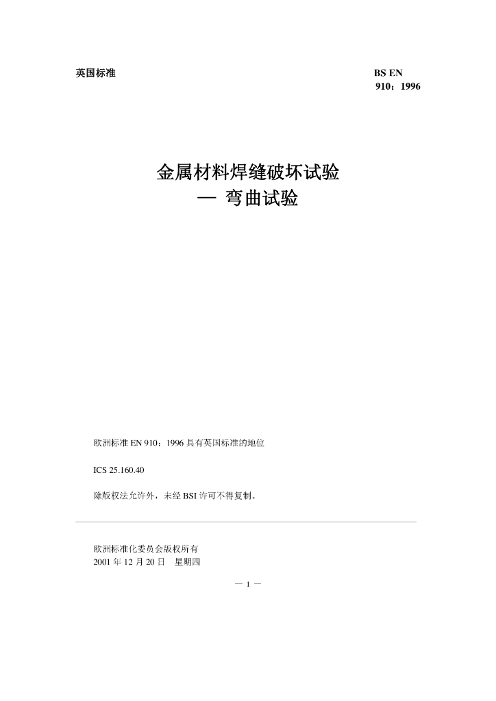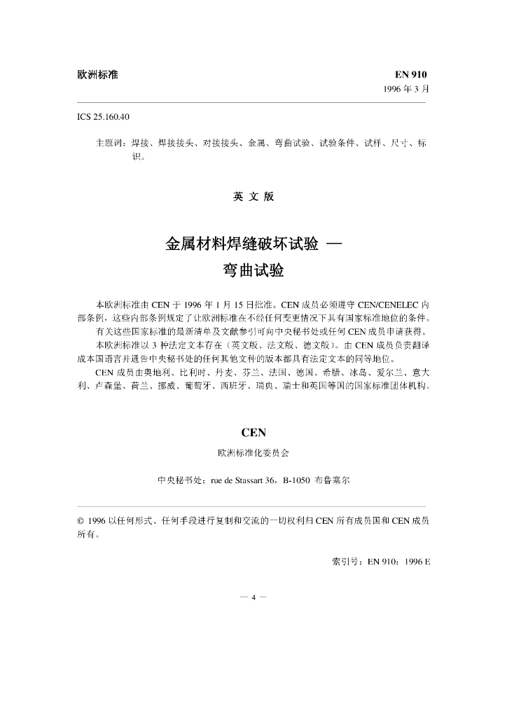BS EN 910-1996 金属材料焊缝破坏试验—弯曲试验(中文版)