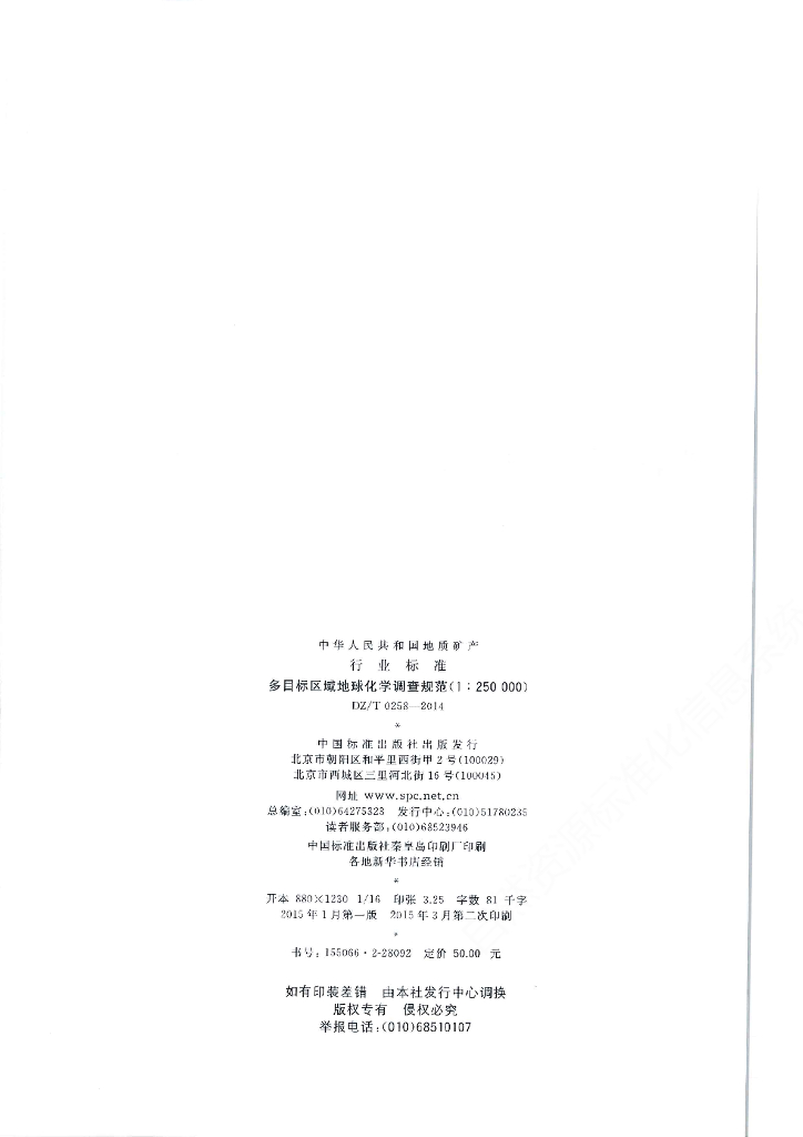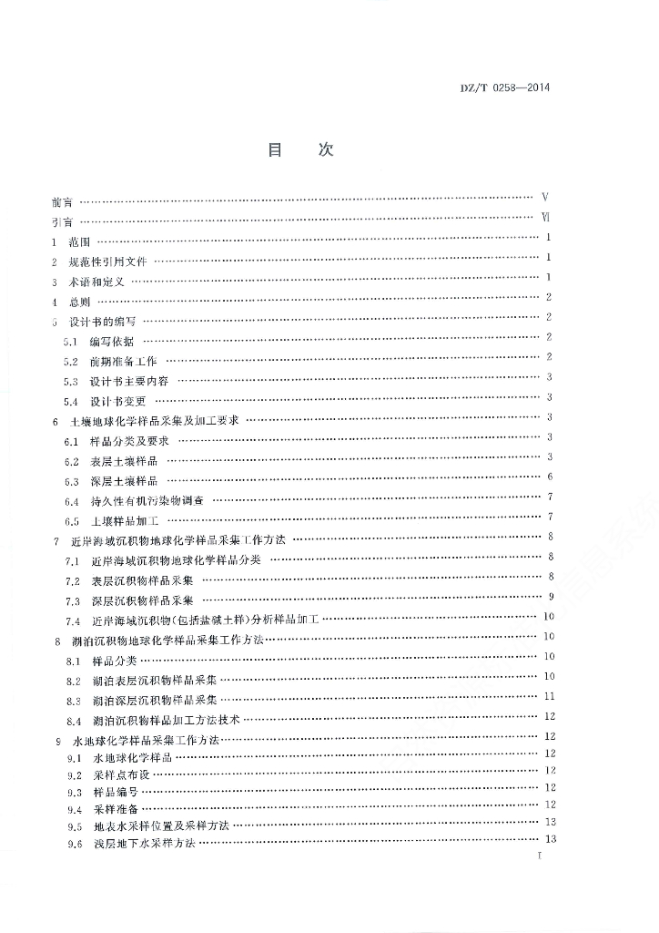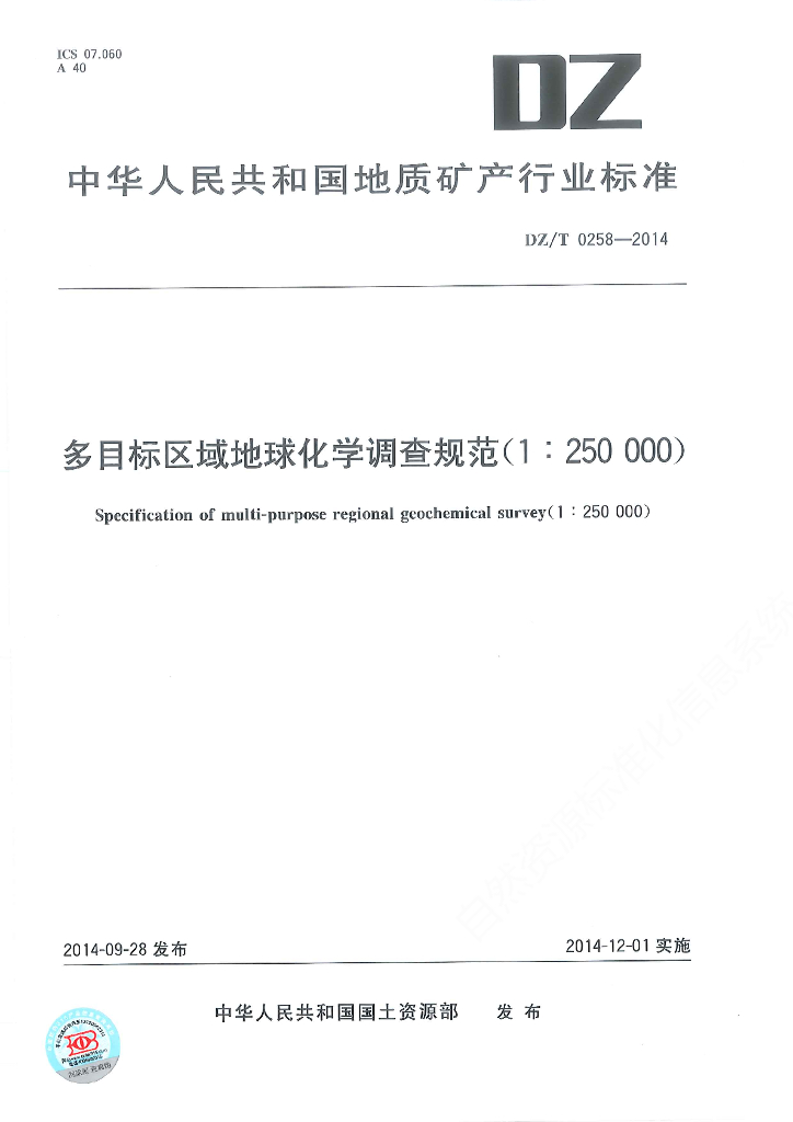 DZ/T 0258-2014 多目标区域地球化学调查规范(1:250000)