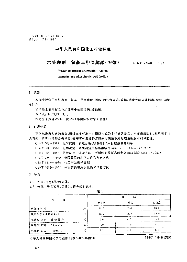 HG/T 2840-1997 水处理剂 氨基三甲叉膦酸(固体)