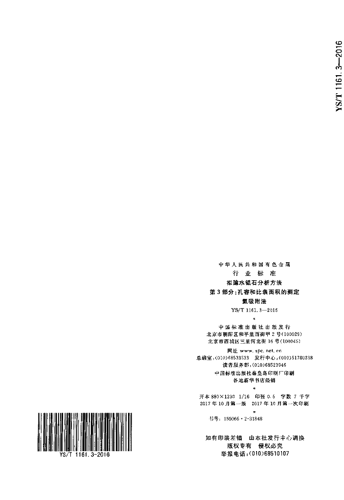 YS/T 1161.3-2016 拟薄水铝石分析方法 第3部分:孔容和比表面积的测定 氮吸附法