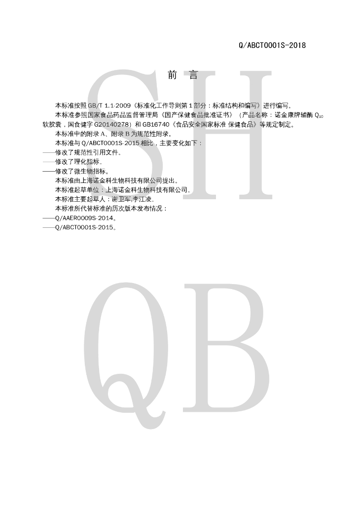 Q/ABCT 0001S-2018 诺金康牌辅酶Q10软胶囊