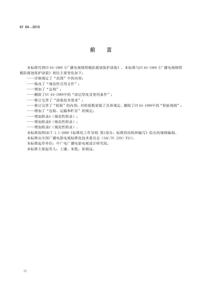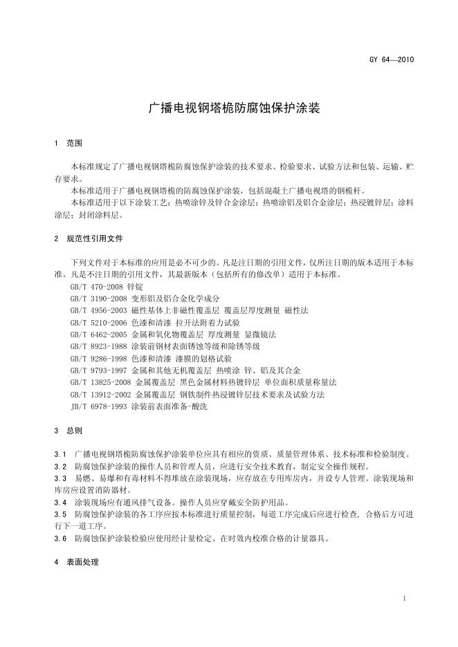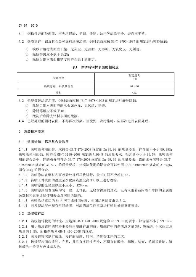 GY/T 64-2010 广播电视钢塔桅防腐蚀保护涂装