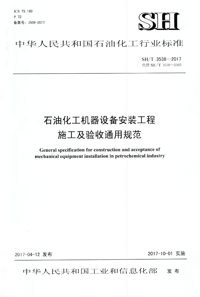 SH/T 3538-2017 石油化工机器设备安装工程施工及验收通用规范