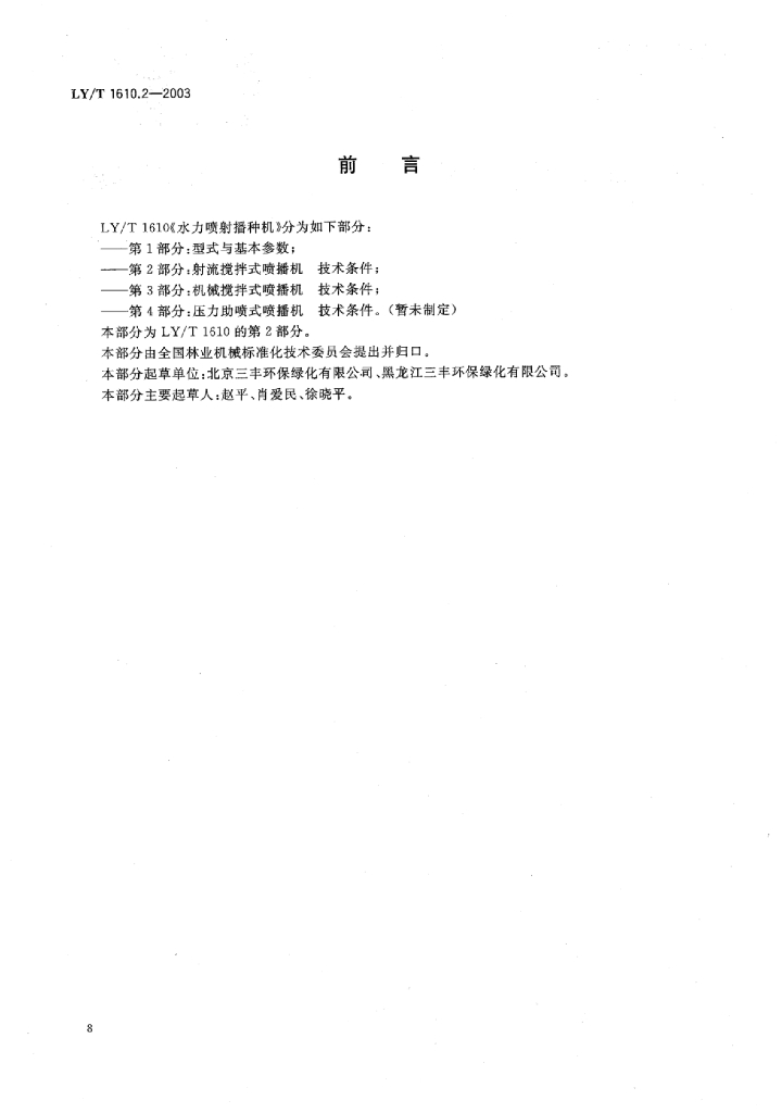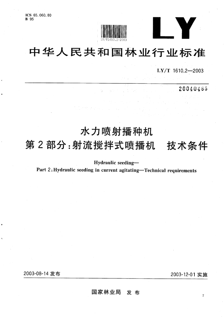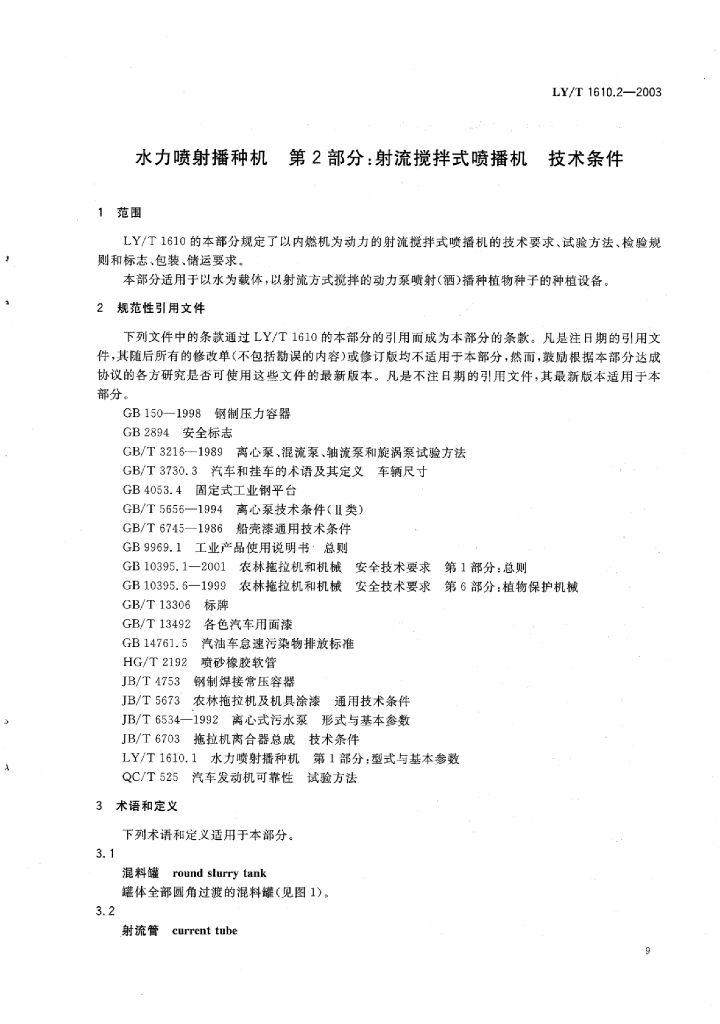 LY/T 1610.2-2003 水力喷射播种机 第2部分:射流搅拌式喷播机技术条件