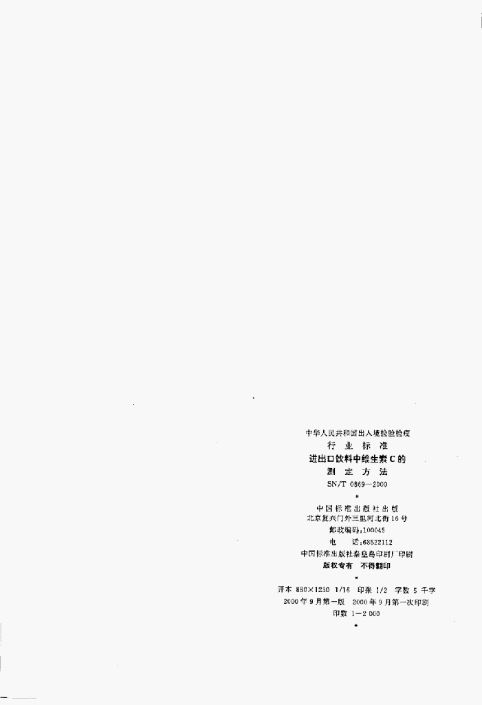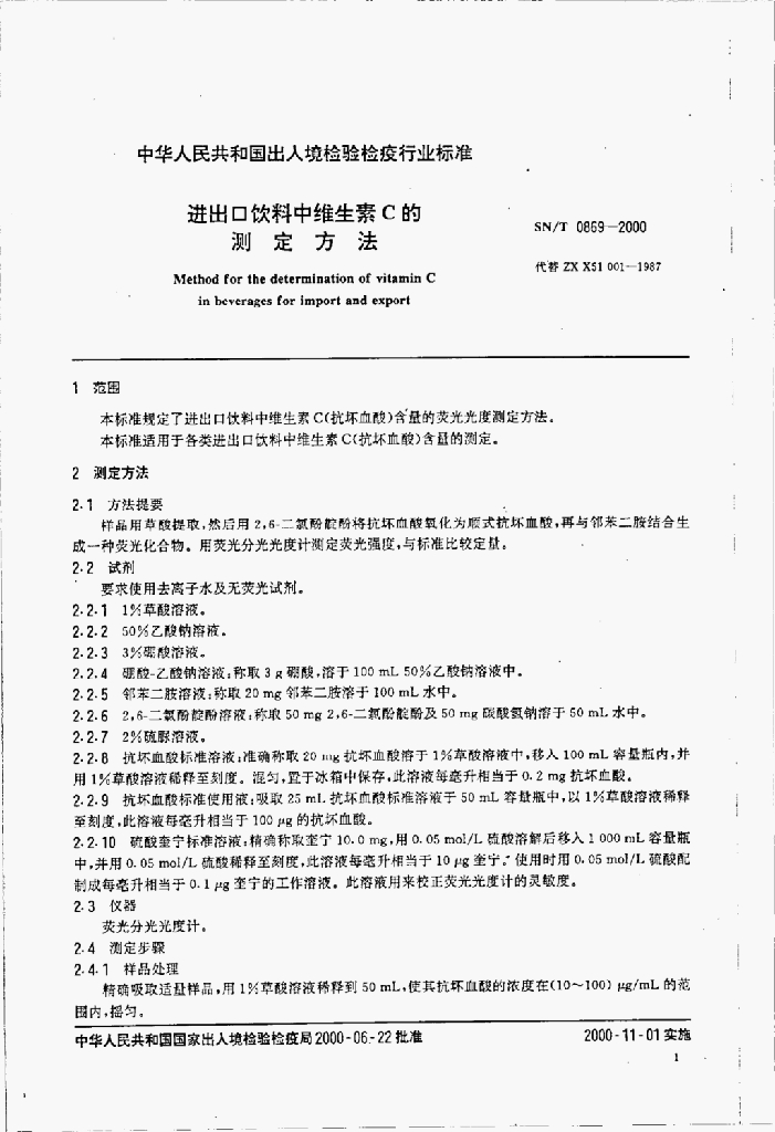 SN/T 0869-2000 进出口饮料中维生素C的测定方法