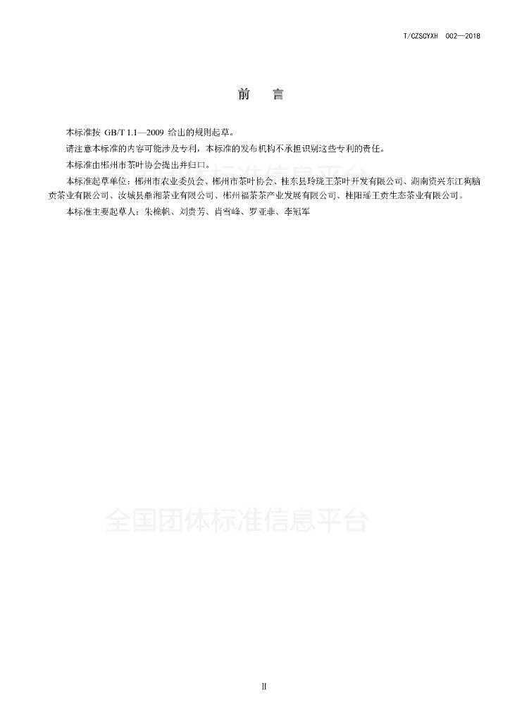 郴州市农业委员、郴州市茶叶协会、桂东县玲珑王茶叶开发有限公司、湖南资兴东江狗脑贡茶业有限公司、汝城县鼎湘茶业有限公司、郴州福茶茶产业发展有限公司、 桂阳瑶王贡生态茶业有限公司