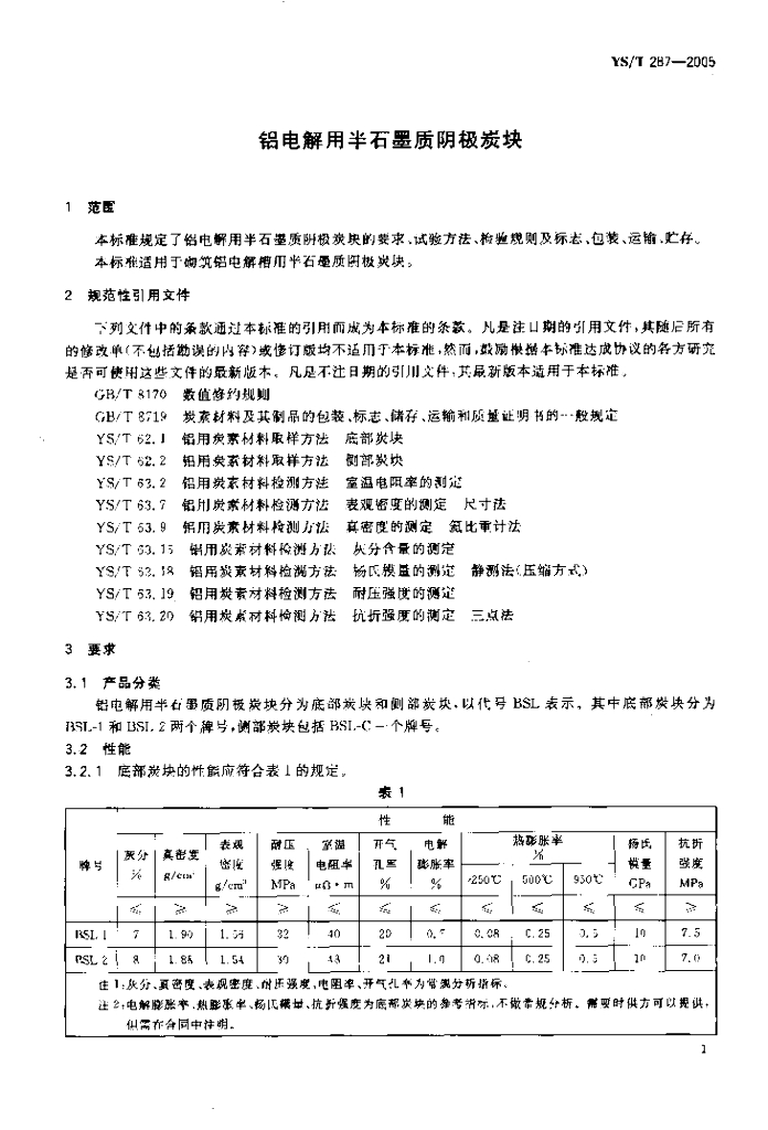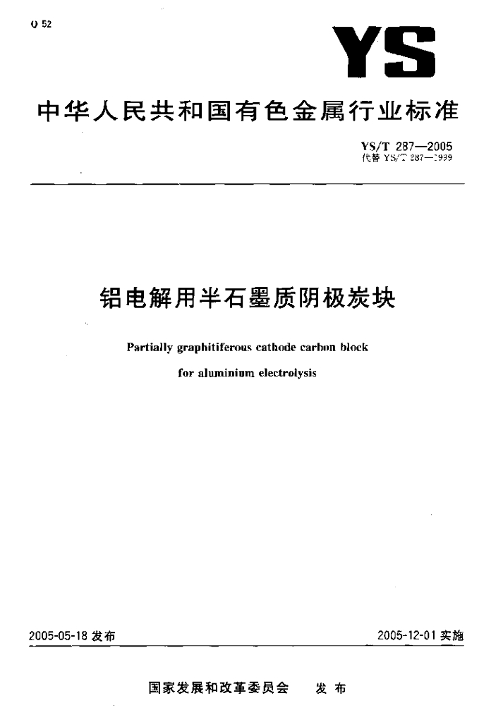 YS/T 287-2005 铝电解用半石墨质阴极炭块