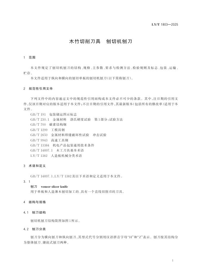 LY/T 1803-2025 木竹切削刀具 刨切机刨刀