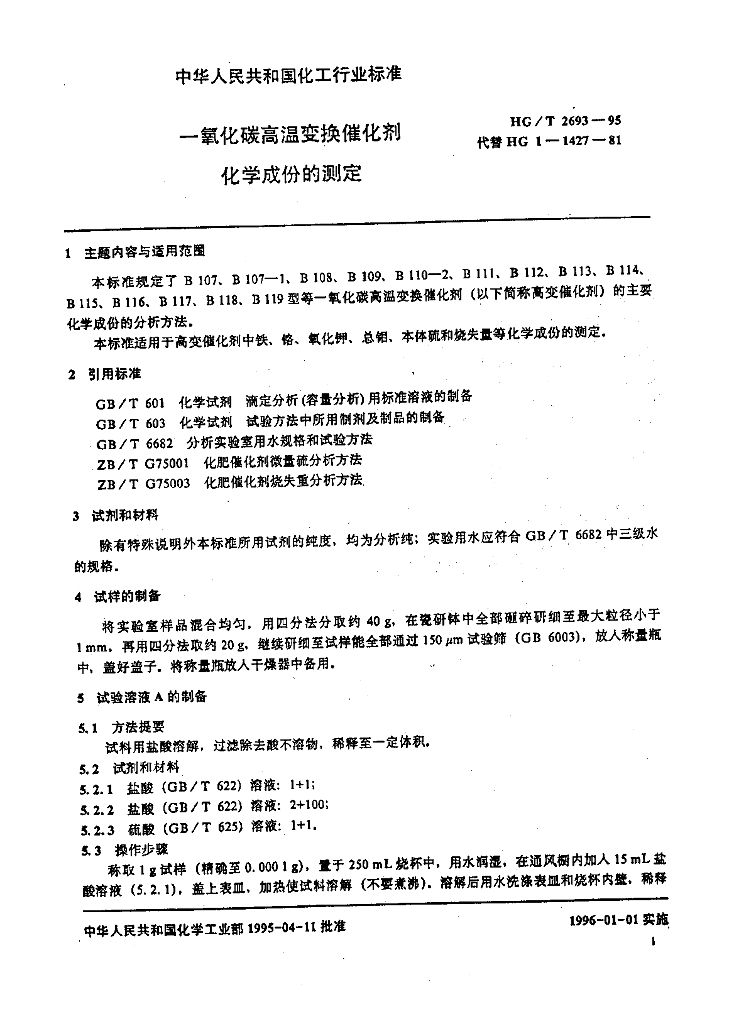 HG/T 2693-1995 一氧化碳高温变换催化剂化学成份的测定