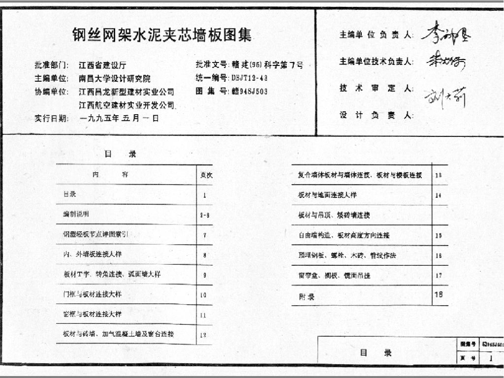 赣94SJ503 钢丝网架水泥夹芯墙板图集