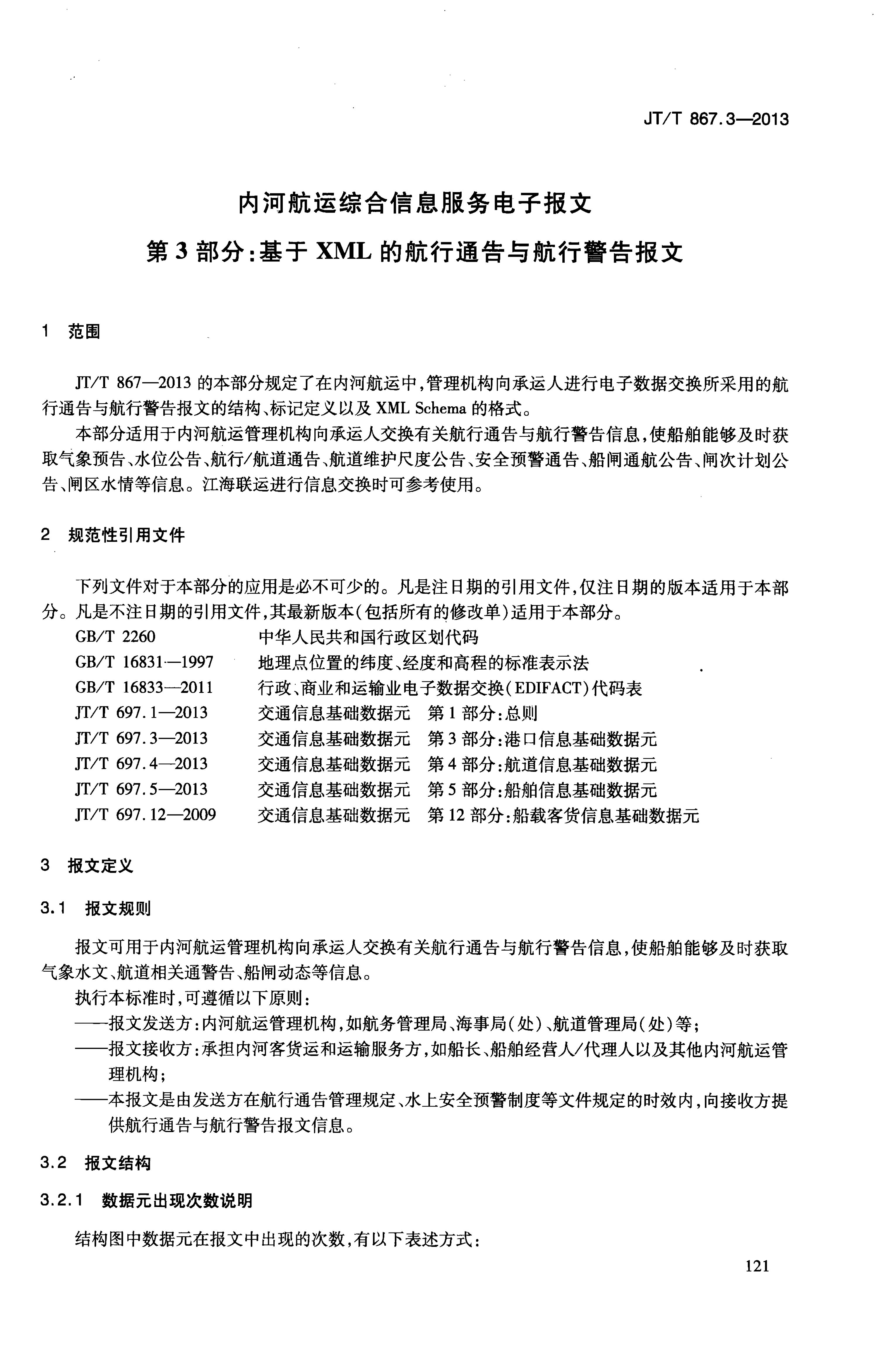 JT/T 867.3-2013 内河航运综合信息服务电子报文 第3部分:基于XML的航行通告与航行警告报文