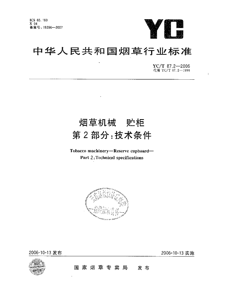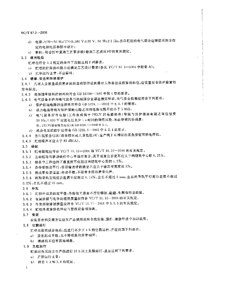 YC/T 87.2-2006 烟草机械 贮柜 第2部分:技术条件