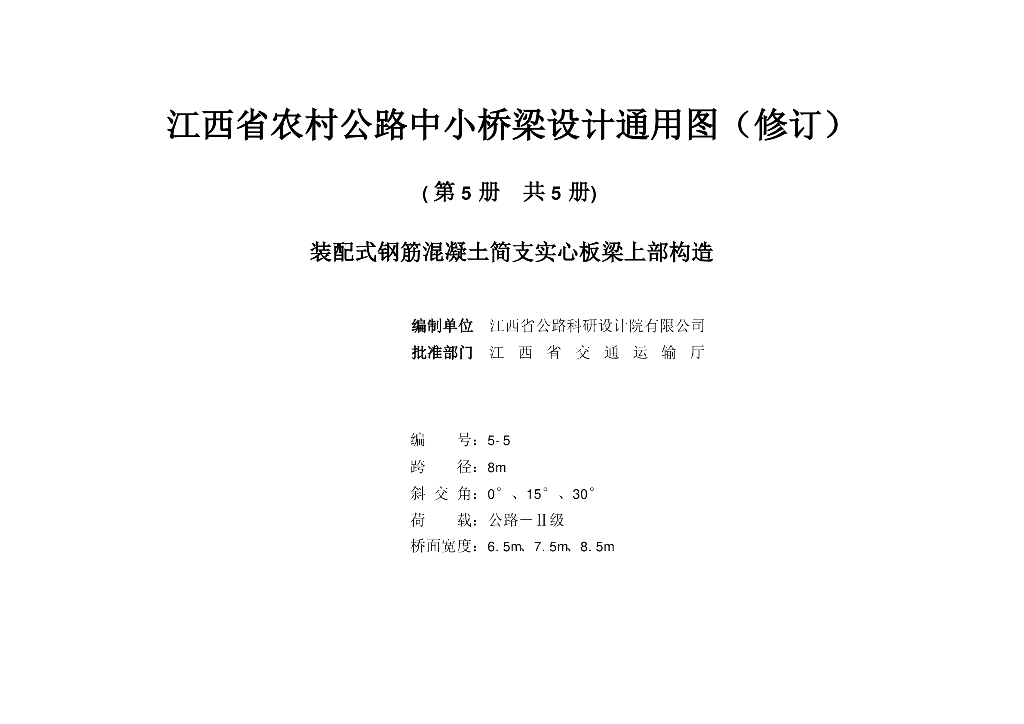 江西省农村公路中小桥梁设计通用图(修订)(第5册)装配式钢筋混凝土简支实心板梁上部构造图集