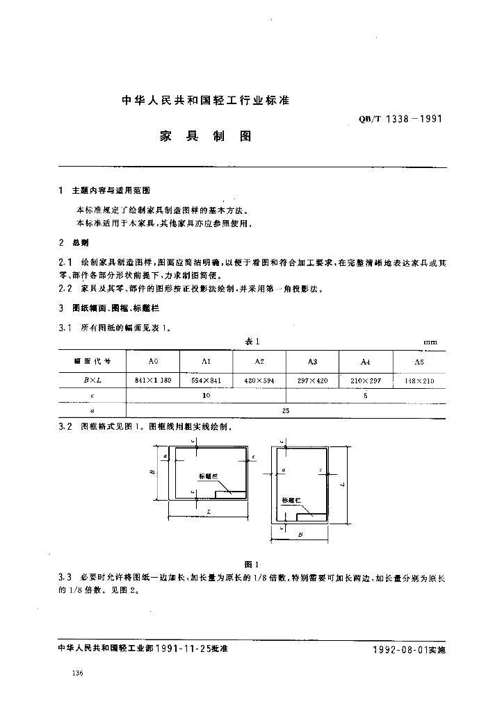 QB/T 1338-1991 家具制图
