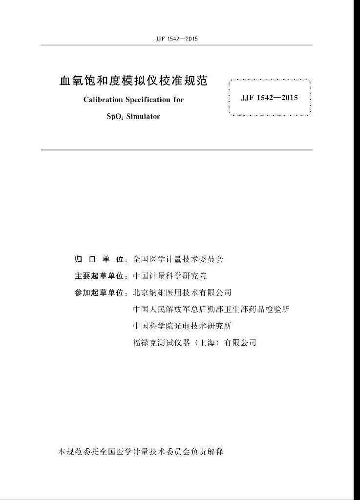 中国计量科学研究院、北京纳雄医用技术有限公司、中国人民解放军总后勤部卫生部药品检验所、中国科学院光电技术研究所、福禄克测试仪器(上海)有限公司