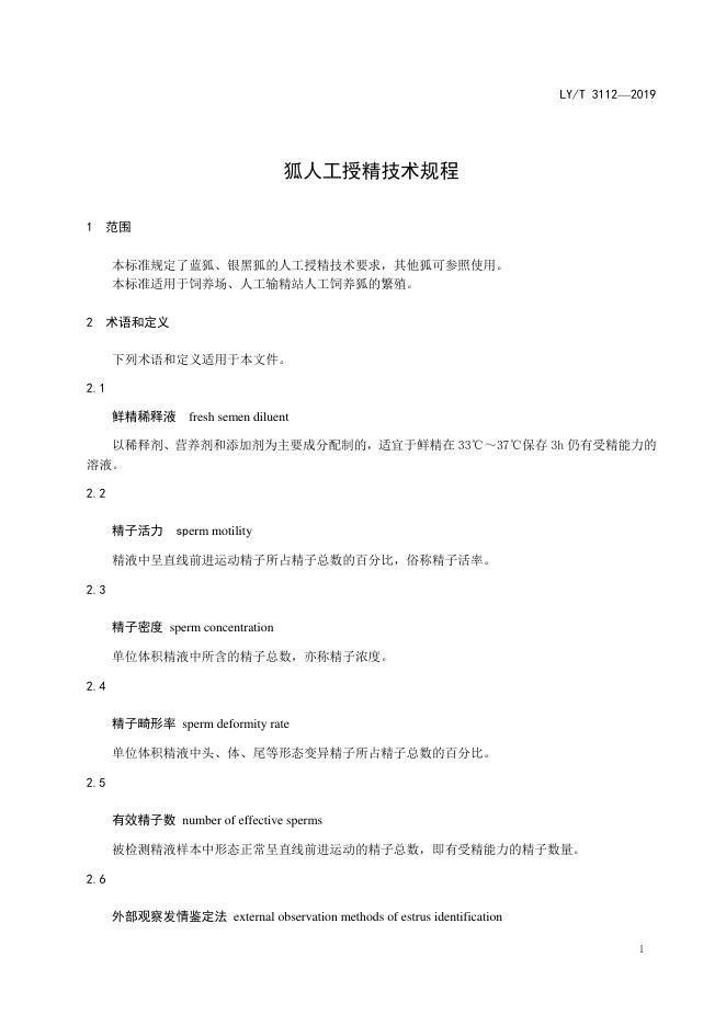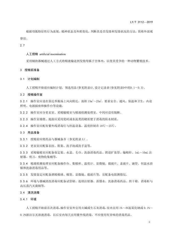LY/T 3112-2019 狐人工授精技术规程