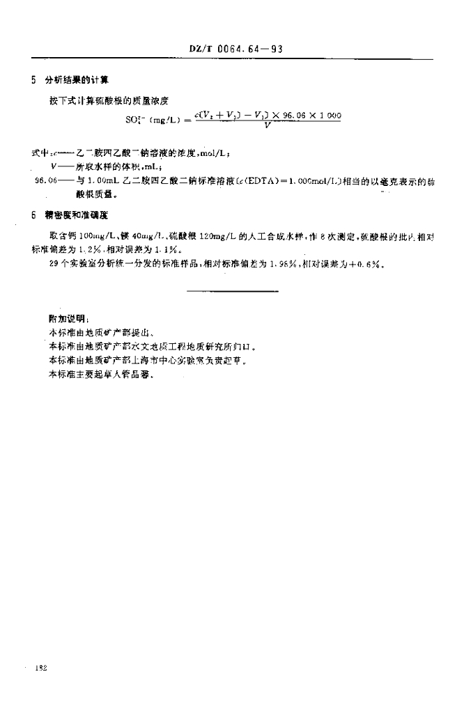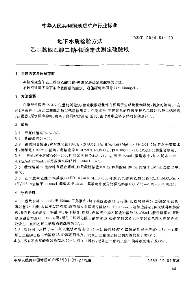 DZ/T 0064.64-1993 地下水质检验方法 乙二胺四乙酸二钠-钡滴定法测定硫酸根