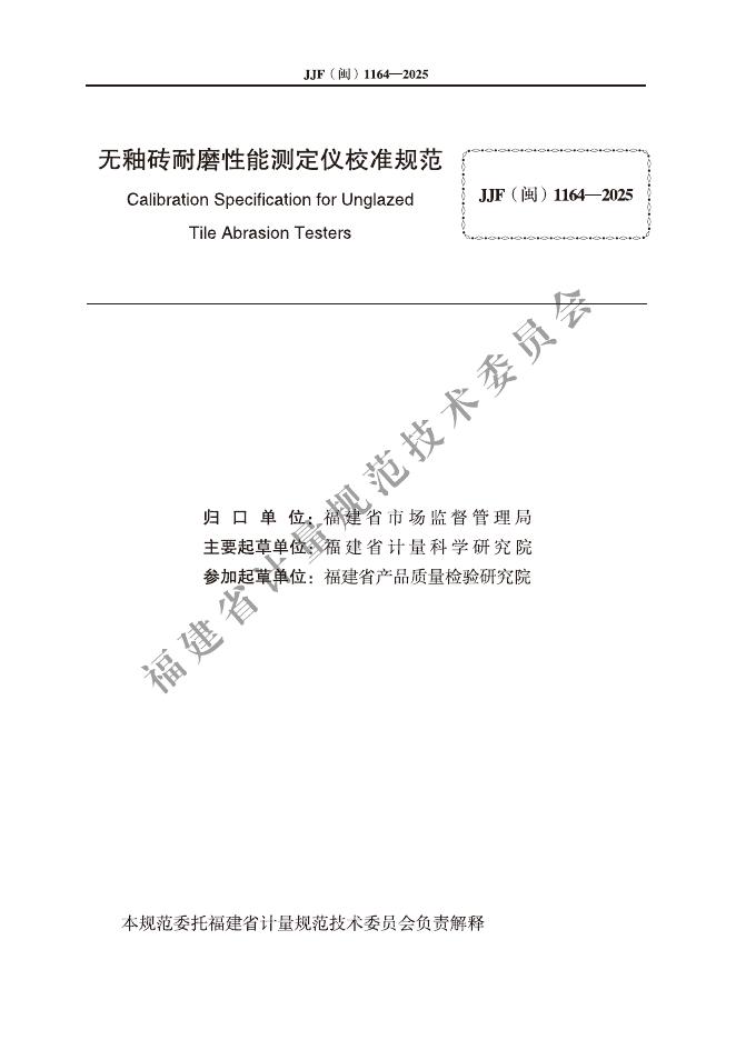 JJF(闽)1164-2025 无釉砖耐磨性能测定仪校准规范