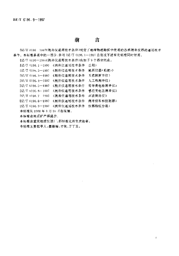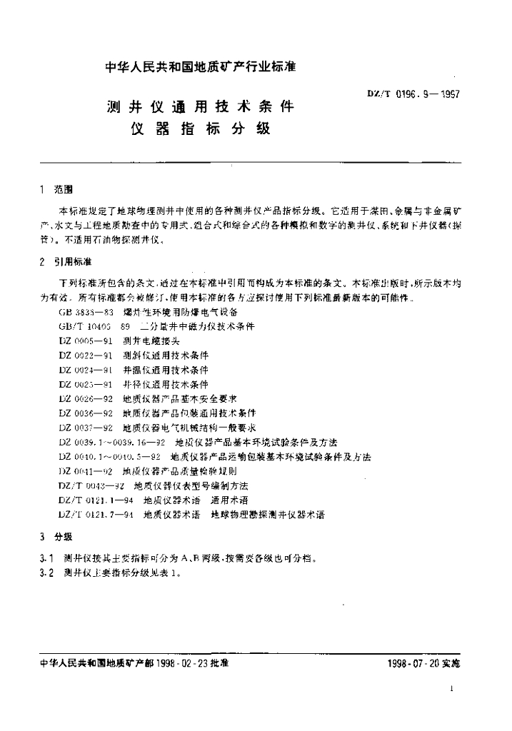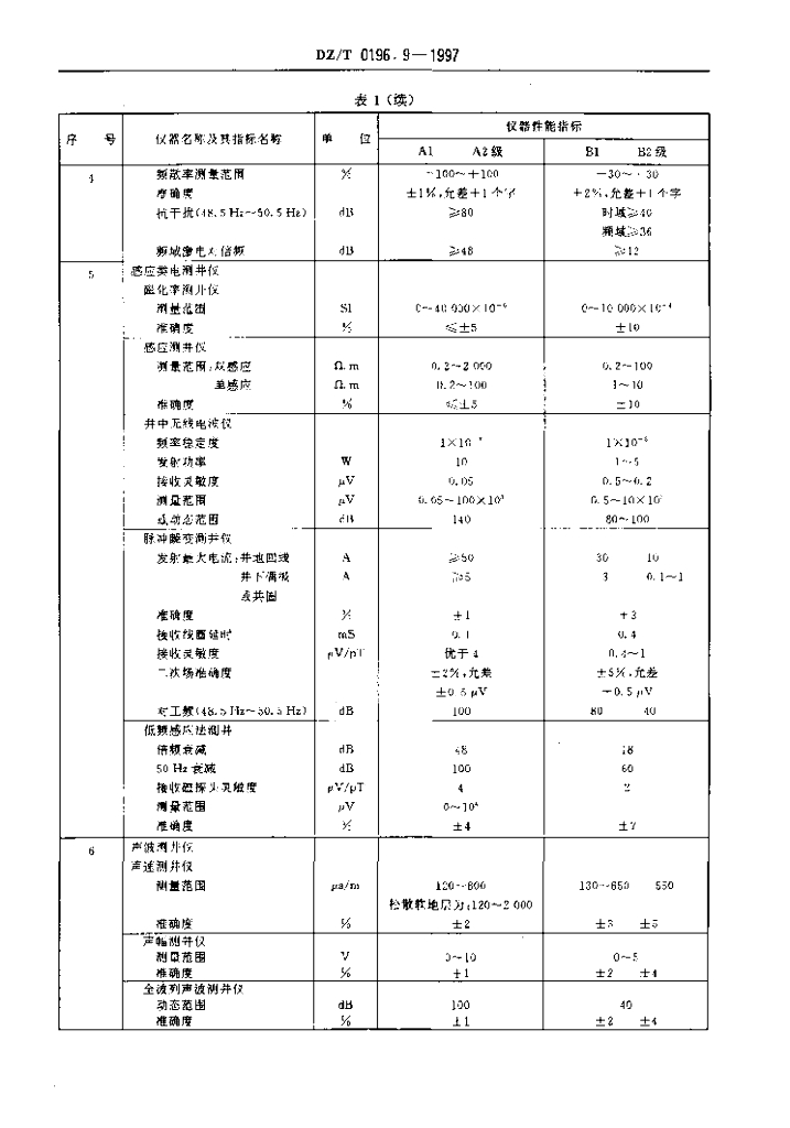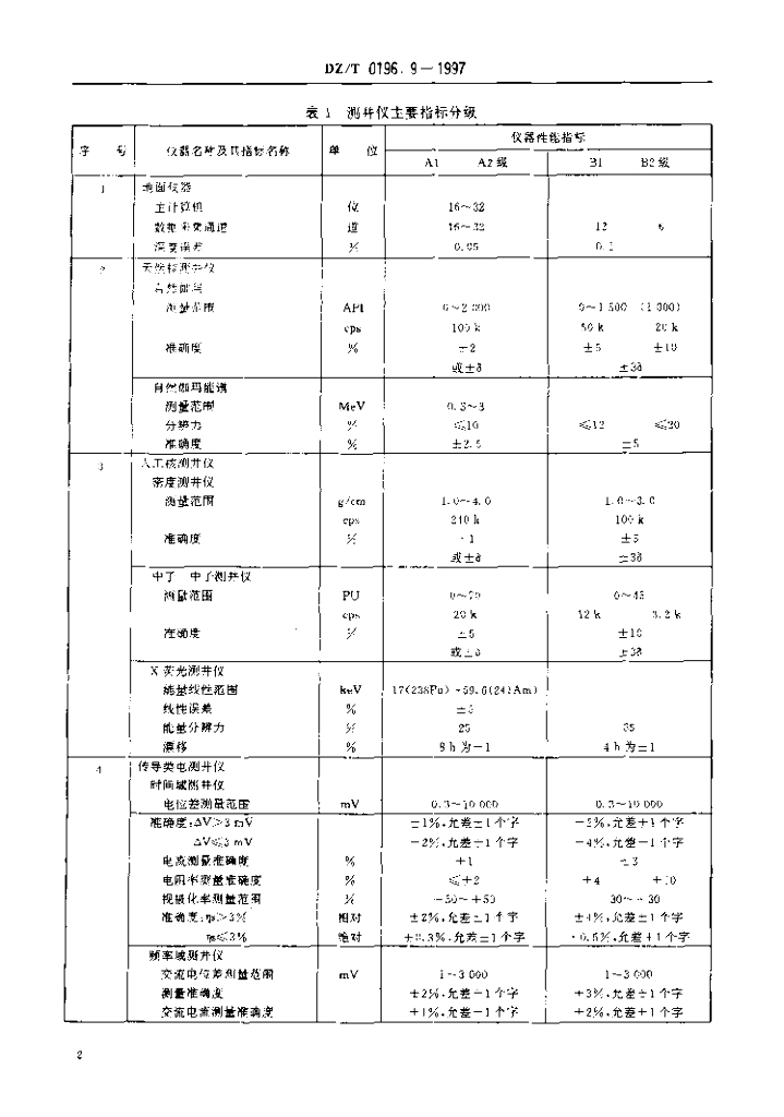 DZ/T 0196.9-1997 测井仪通用技术条件仪器指标分级