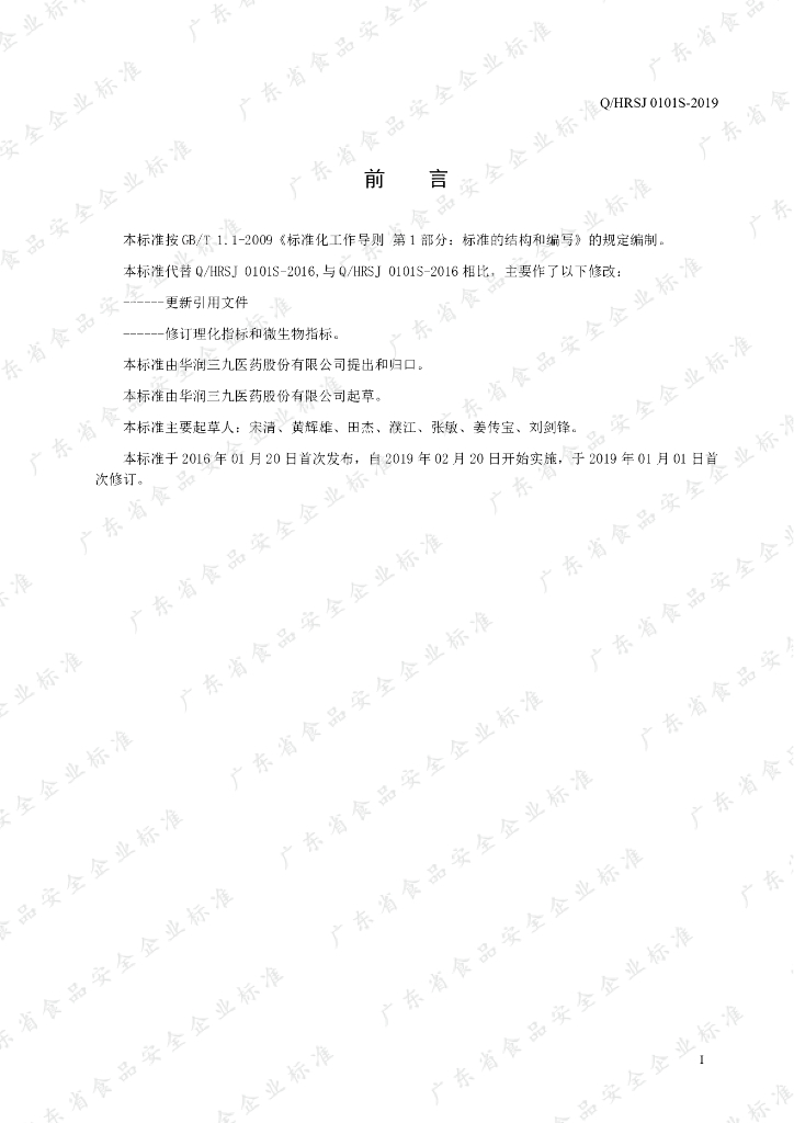 Q/HRSJ 0101S-2019 金银花粉固体饮料