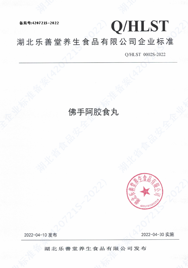 Q/HLST 0002S-2022 佛手阿胶食丸