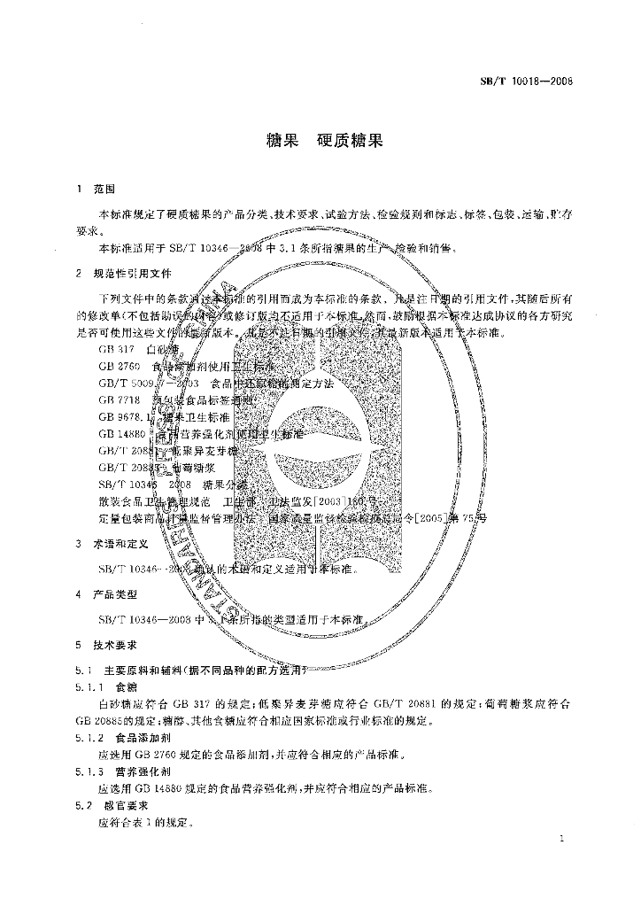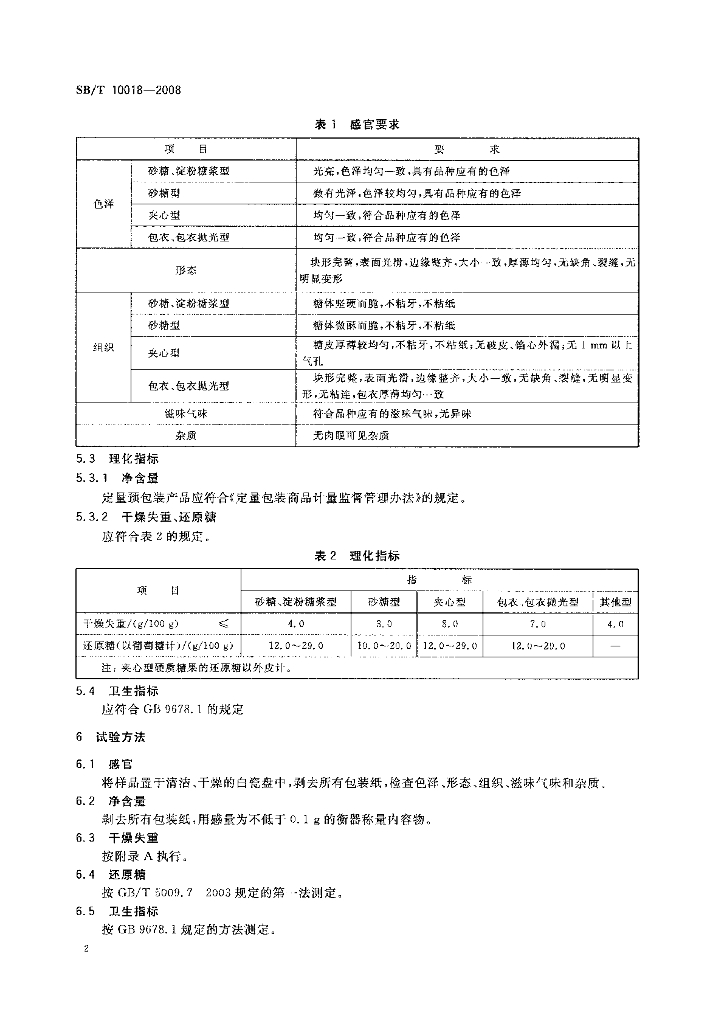 SB/T 10018-2008 糖果 硬质糖果