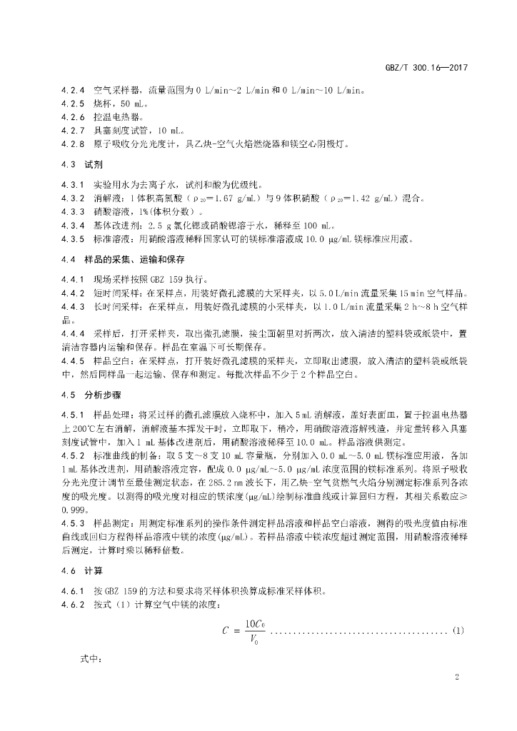 GBZ/T 300.16-2017 工作场所空气有毒物质测定 第16部分:镁及其化合物