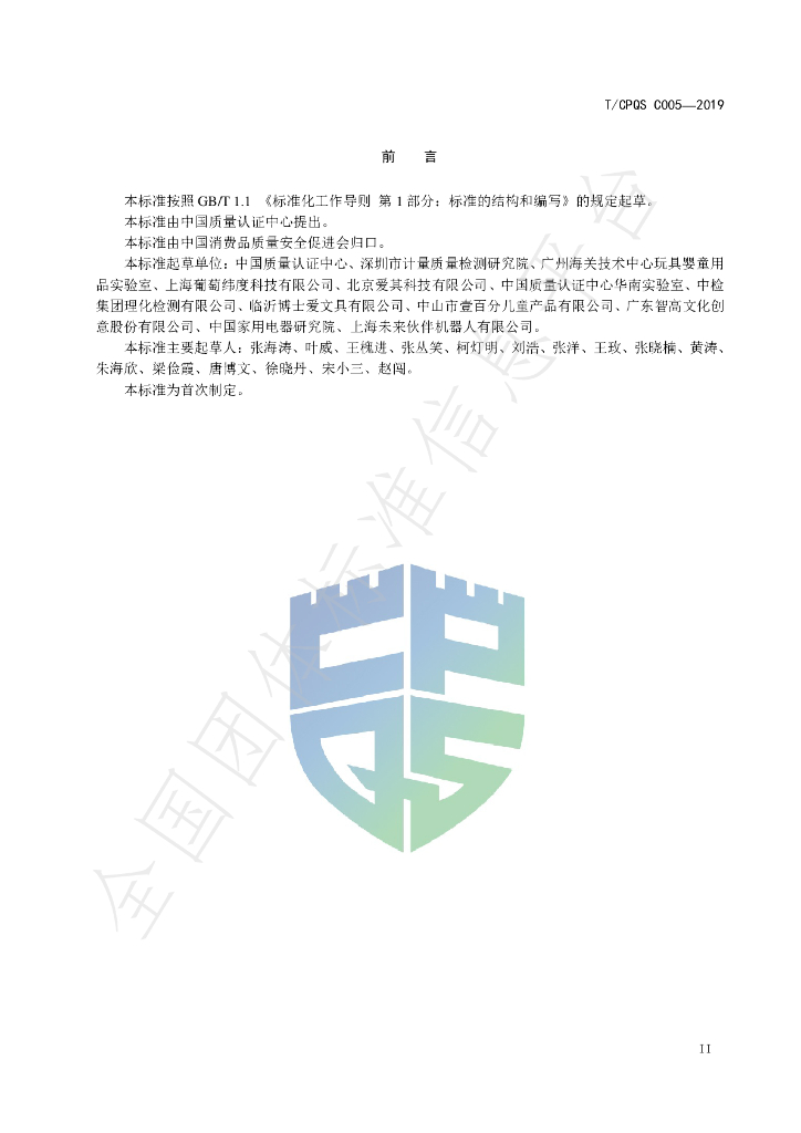 中国质量认证中心、深圳市计量质量检测研究院、广州海关技术中心玩具婴童用品实验室、上海葡萄纬度科技有限公司、北京爱其科技有限公司、中国质量认证中心华南实验室、中检集团理化检测有限公司、临沂博士爱文具有限公司、中山市壹百分儿童产品有限公司、广东智高文化创意股份有限公司、中国家用电器研究院、上海未来伙伴机器人有限公司。