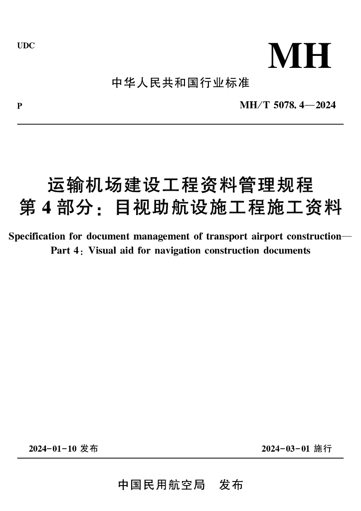 MH/T 5078.4-2024 运输机场建设工程资料管理规程 第4部分:目视助航设施工程施工资料