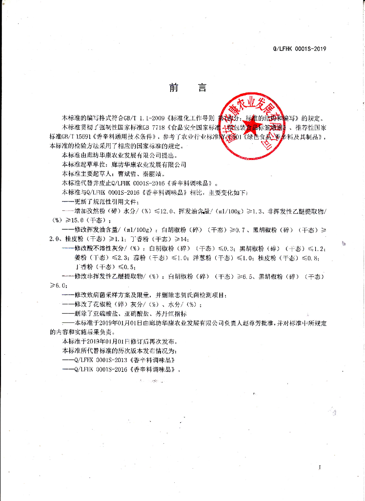 Q/LFHK 0001S-2019 香辛料调味品