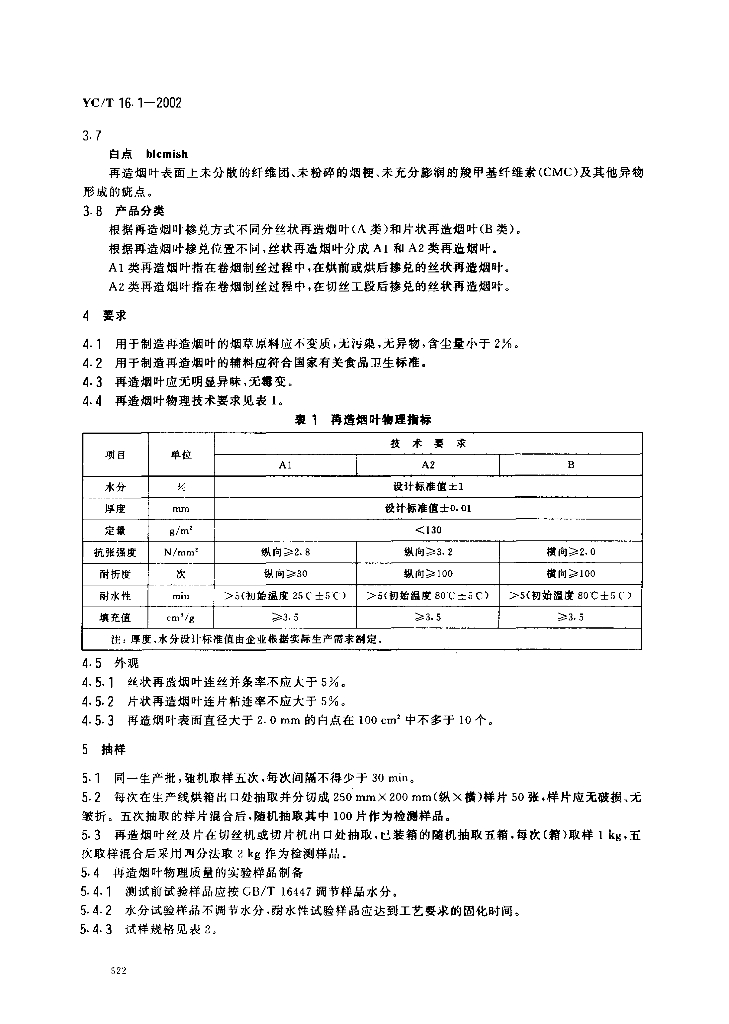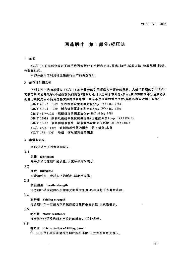 YC/T 16.1-2002 再造烟叶 第1部分辊压法