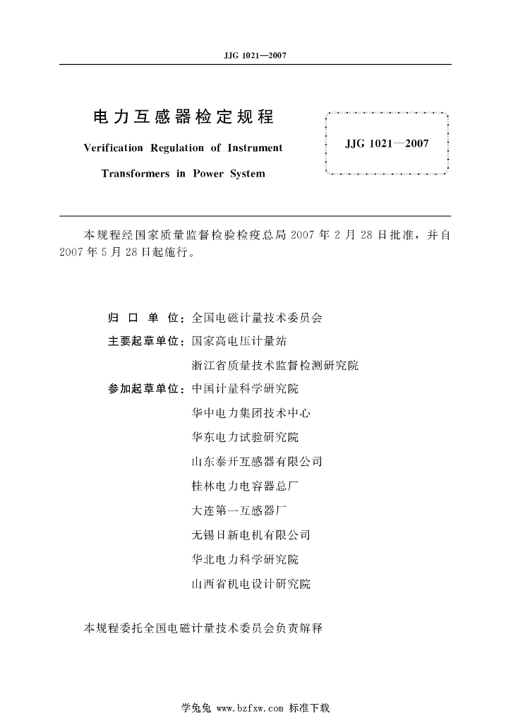 国家高电压计量站、浙江省质量技术监督检测研究院、中国计量科学研究院、华中电力集团技术中心、华东电力试验研究院、山东泰开互感器有限公司、桂林电力电容器总厂、大连第一互感器厂、无锡日新电机有限公司、华北电力科学研究院、山西省机电设计研究院