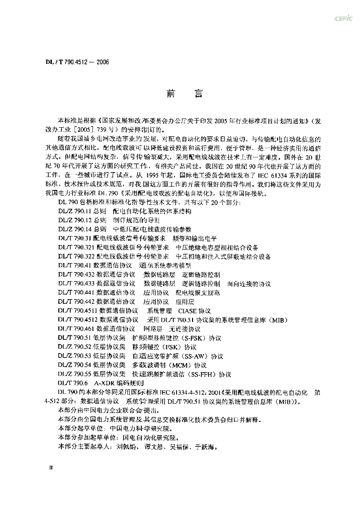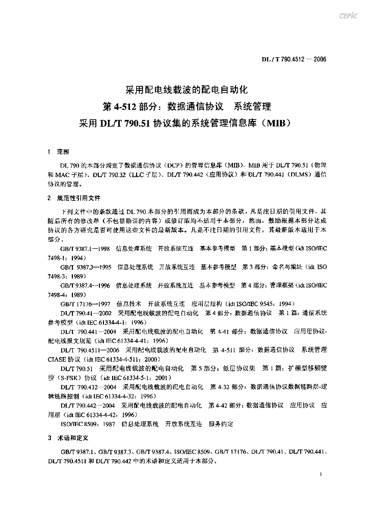 DL/T 790.4512-2006 采用配电线载波的配电自动化 第4-512部分:数据通信协议 系统管理 采用DL/T 790.51协议集的系统管理信息库(MIB)