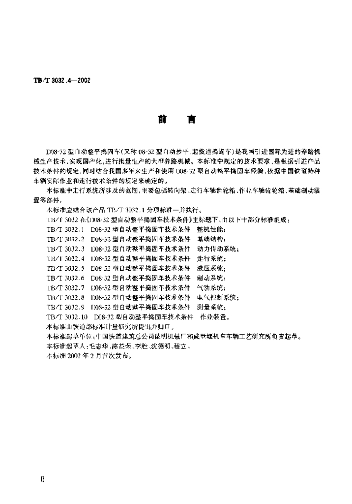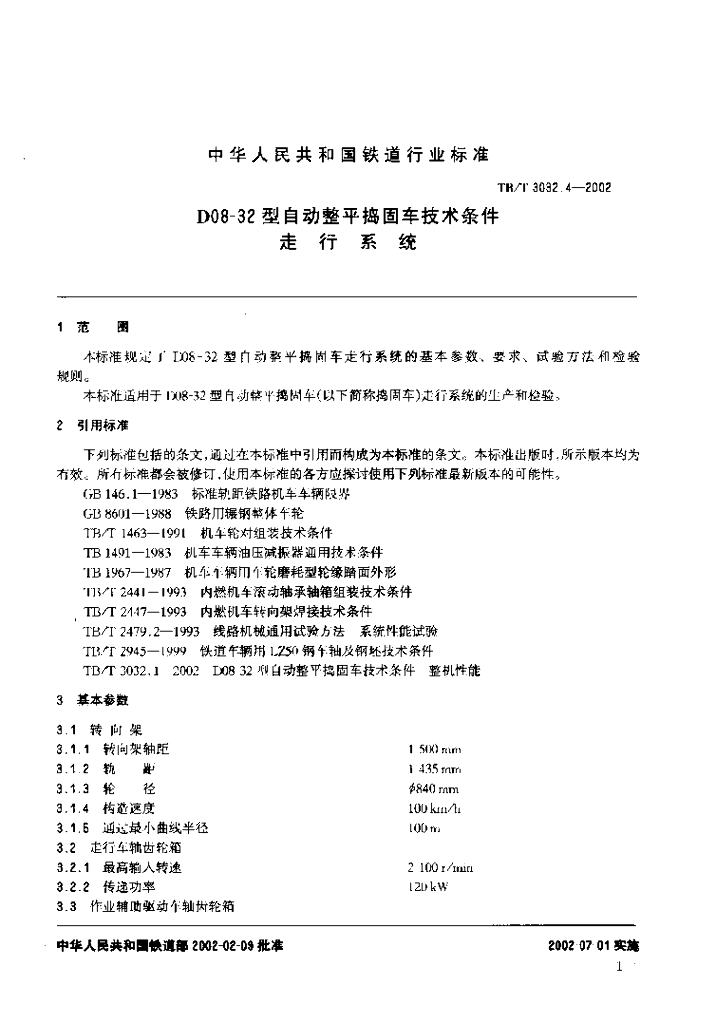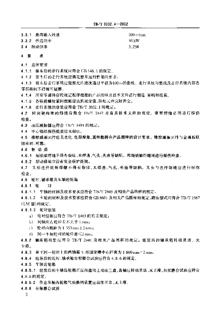 TB/T 3032.4-2002 D08-32型自动整平捣固车技术条件 走行系统