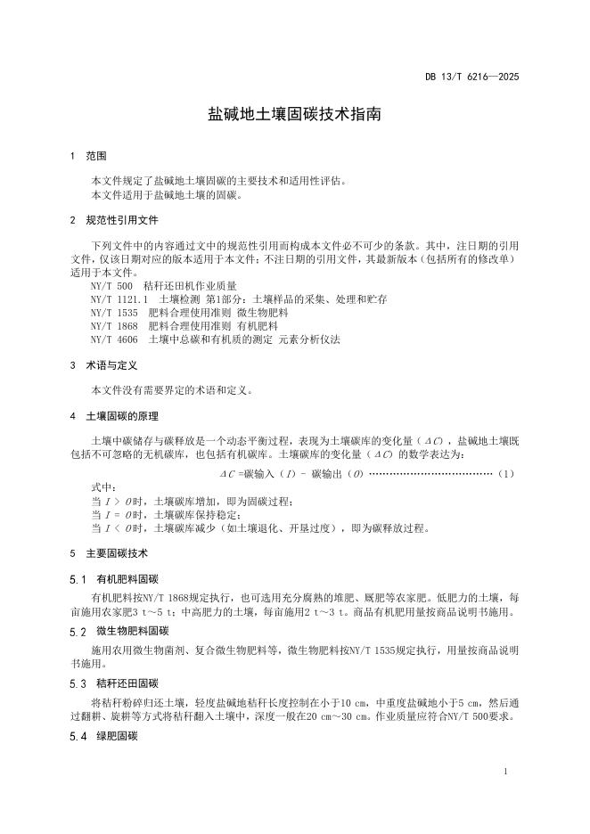 DB13/T 6216-2025 盐碱地土壤固碳技术指南