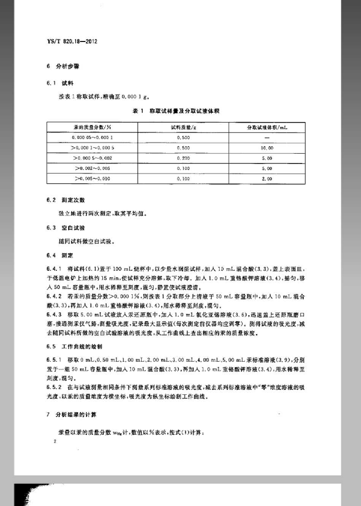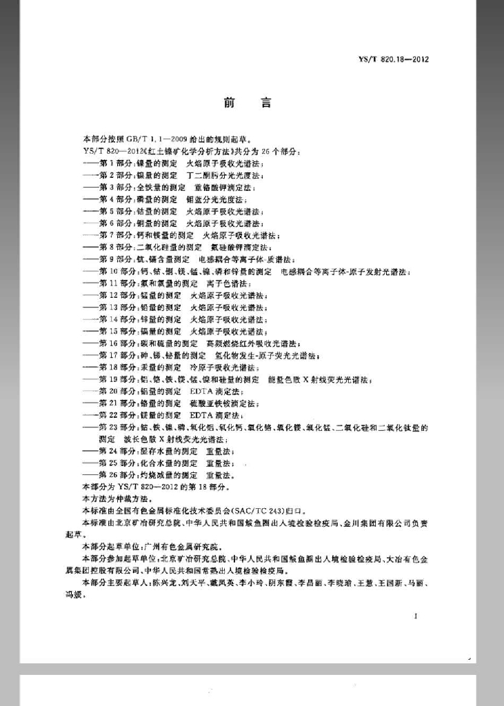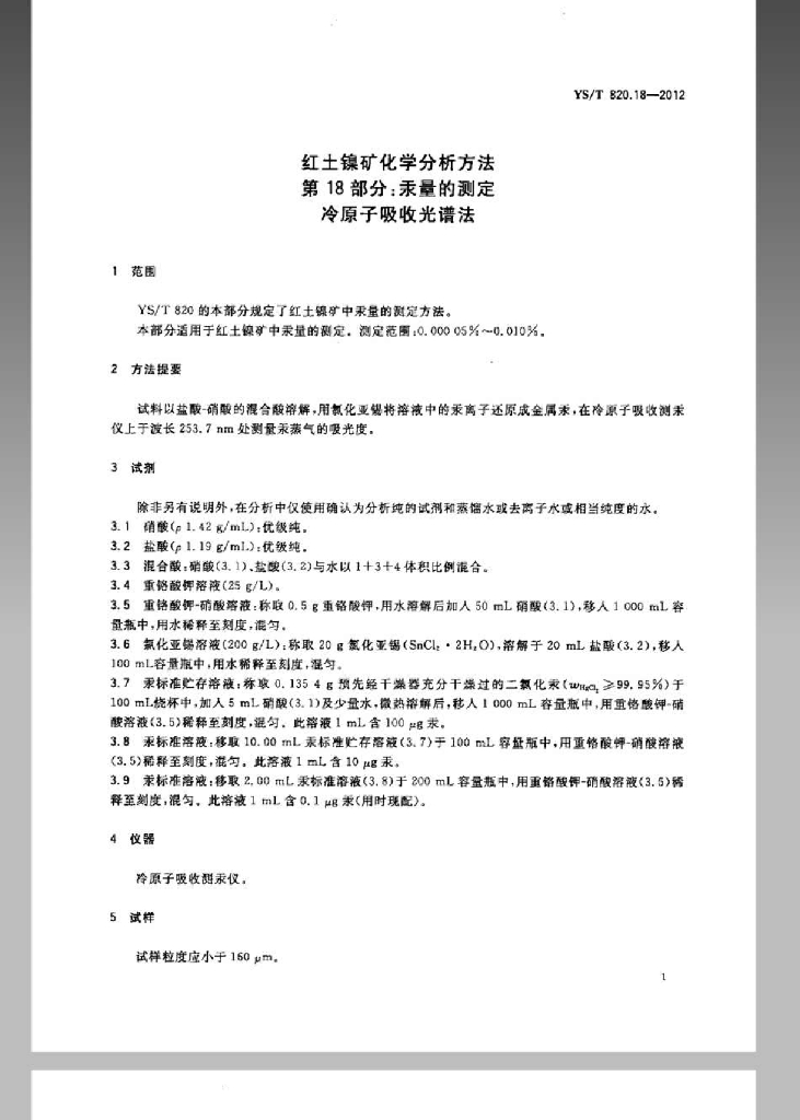 YS/T 820.18-2012 红土镍矿化学分析方法 第18部分:汞量的测定 冷原子吸收光谱法