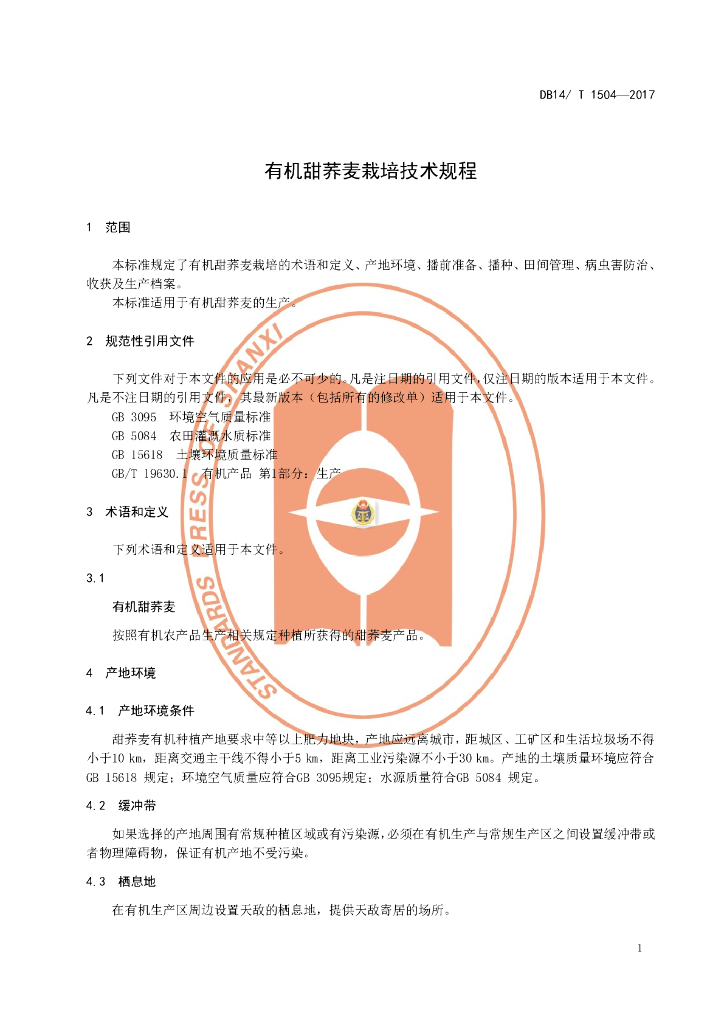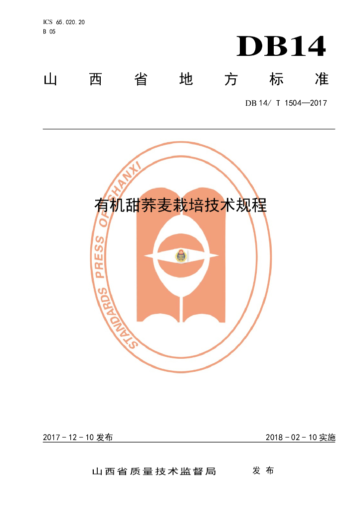 DB14/T 1504-2017 有机甜荞麦栽培技术规程