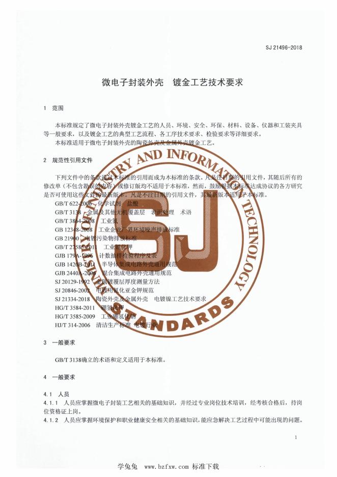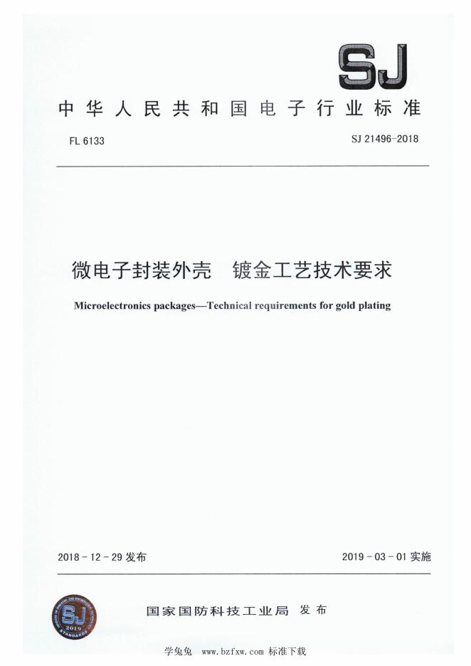 SJ 21496-2018 微电子封装外壳 镀金工艺技术要求