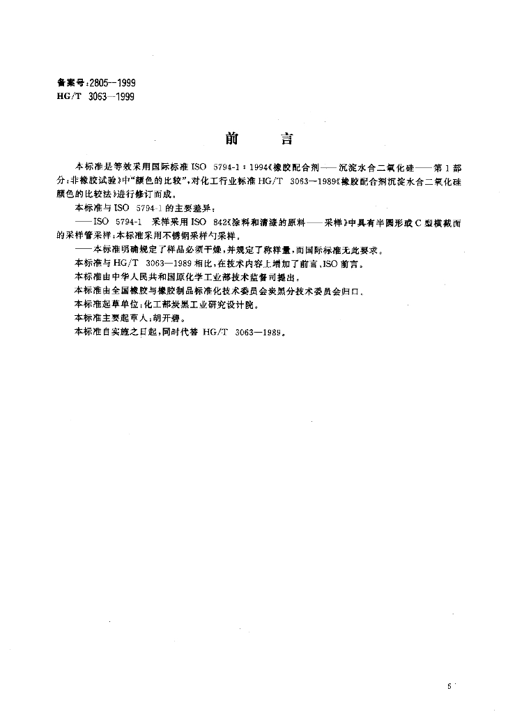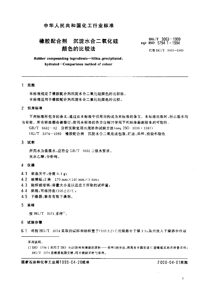 HG/T 3063-1999 橡胶配合剂 沉淀水合二氧化硅颜色的比较法