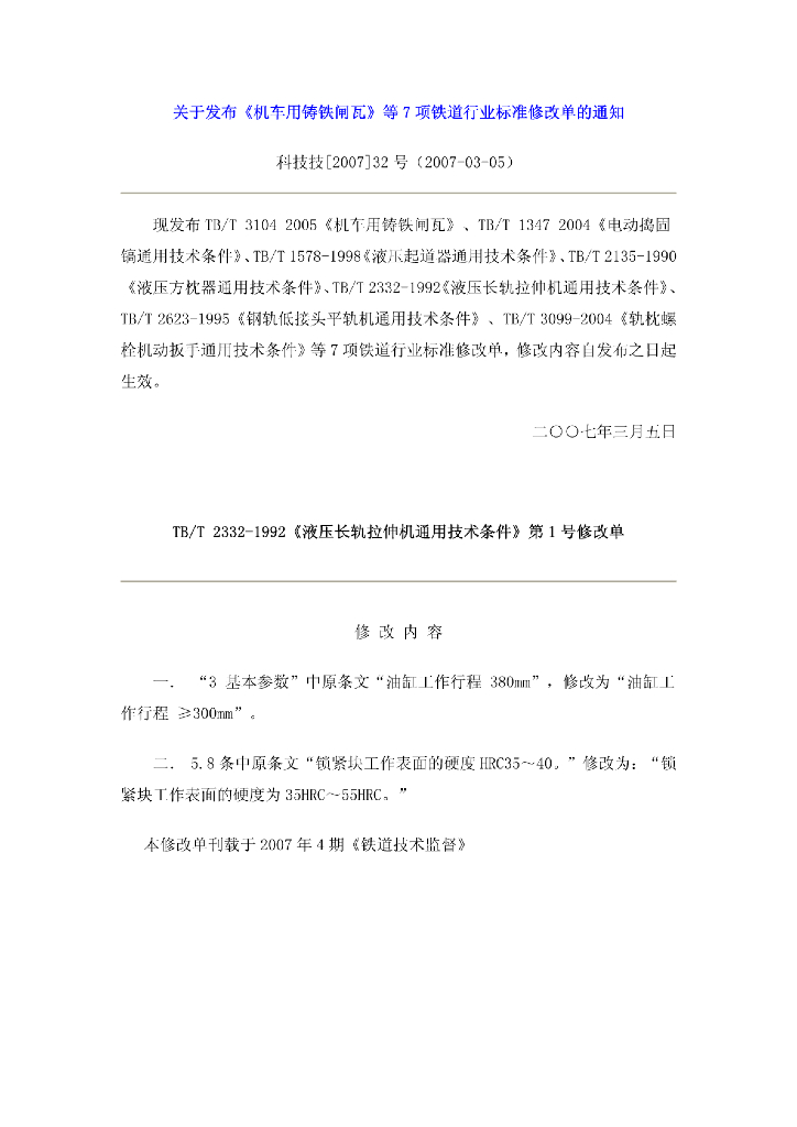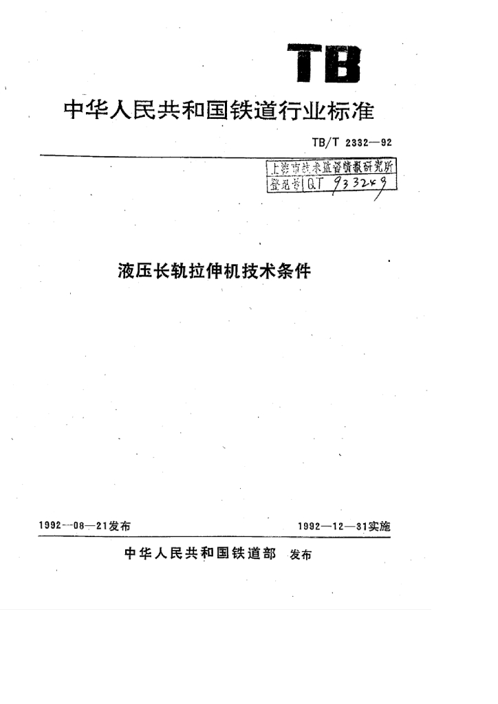 TB/T 2332-1992 液压长轨拉伸机技术条件